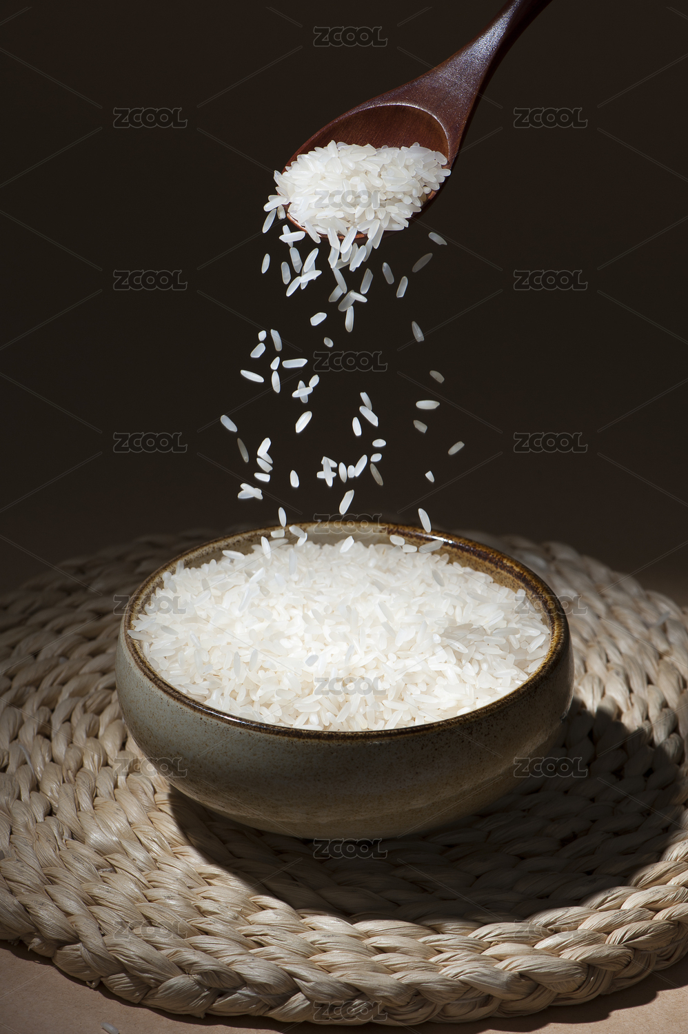 勺子倒大米碗里