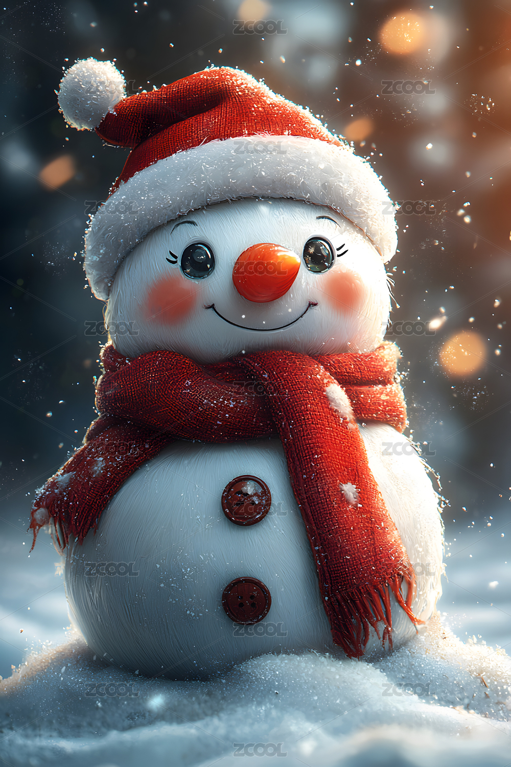 圣诞节,雪人,雪地,卡通,3d效果,电商,围巾,可爱的