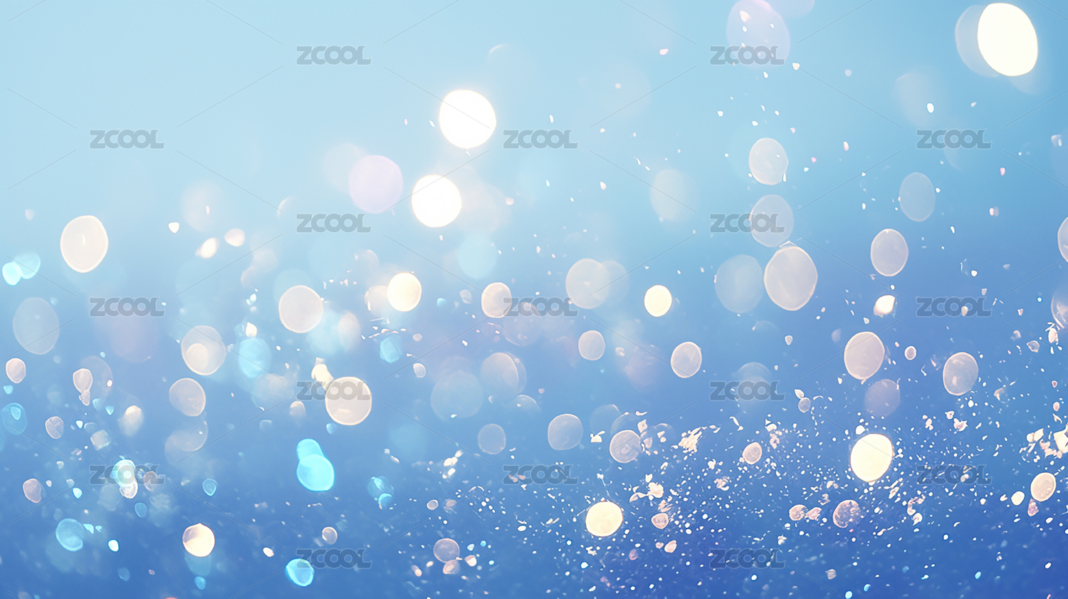 浅蓝背景上白色光斑飘落营造梦幻清新的视觉
