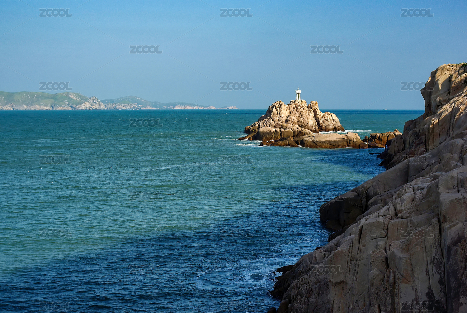 浙江省舟山群岛东极岛灯塔和礁石海岛风光