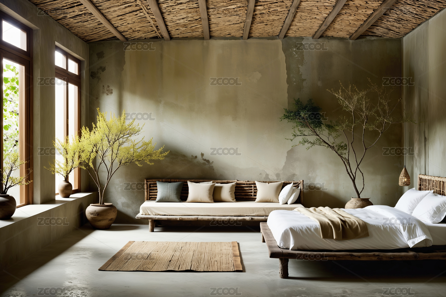 阳光洒落的热带度假别墅客厅