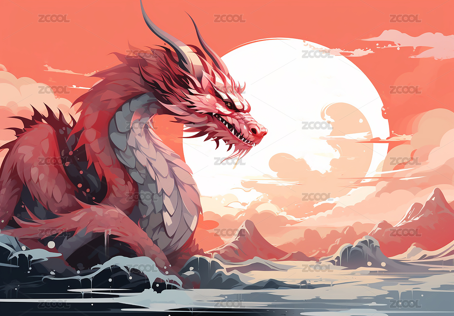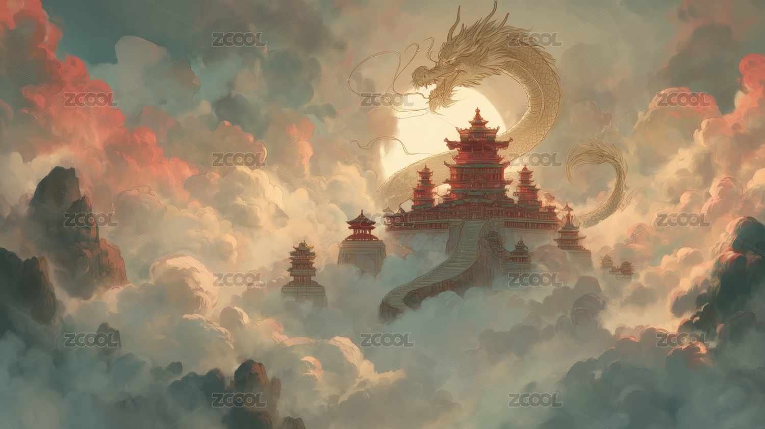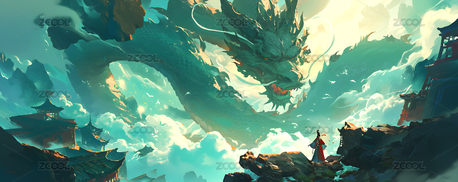 中国风巨龙场景插画