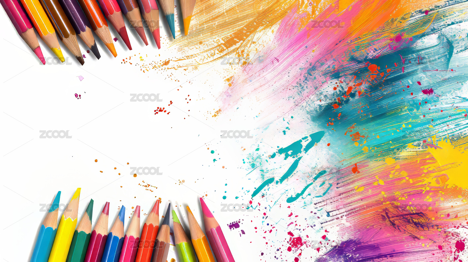 AIGC202402,彩色,色彩,蜡笔,白色,笔触,铅笔,学习,用品,一排