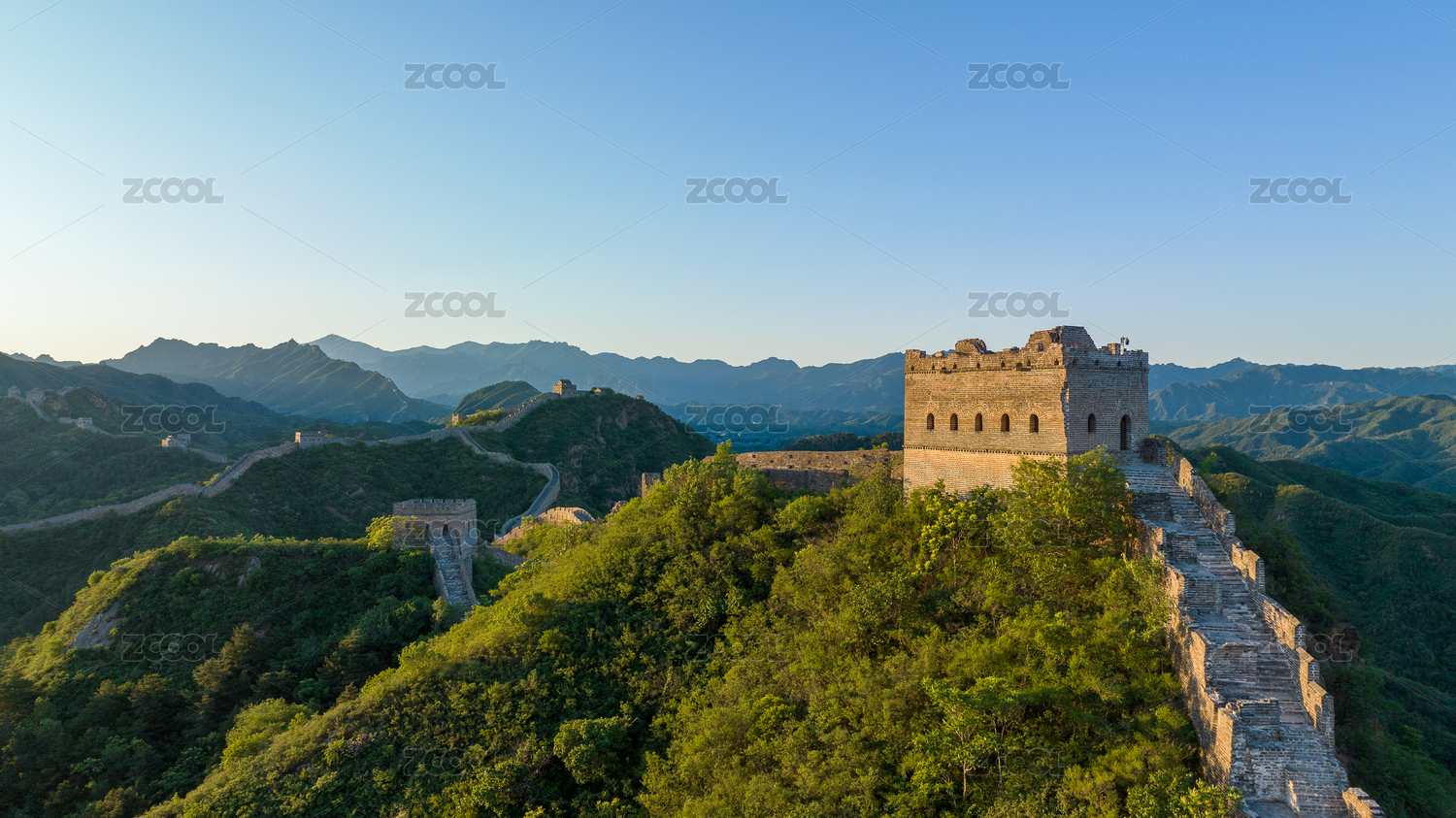 夕阳下的金色长城 中国河北金山岭长城航拍