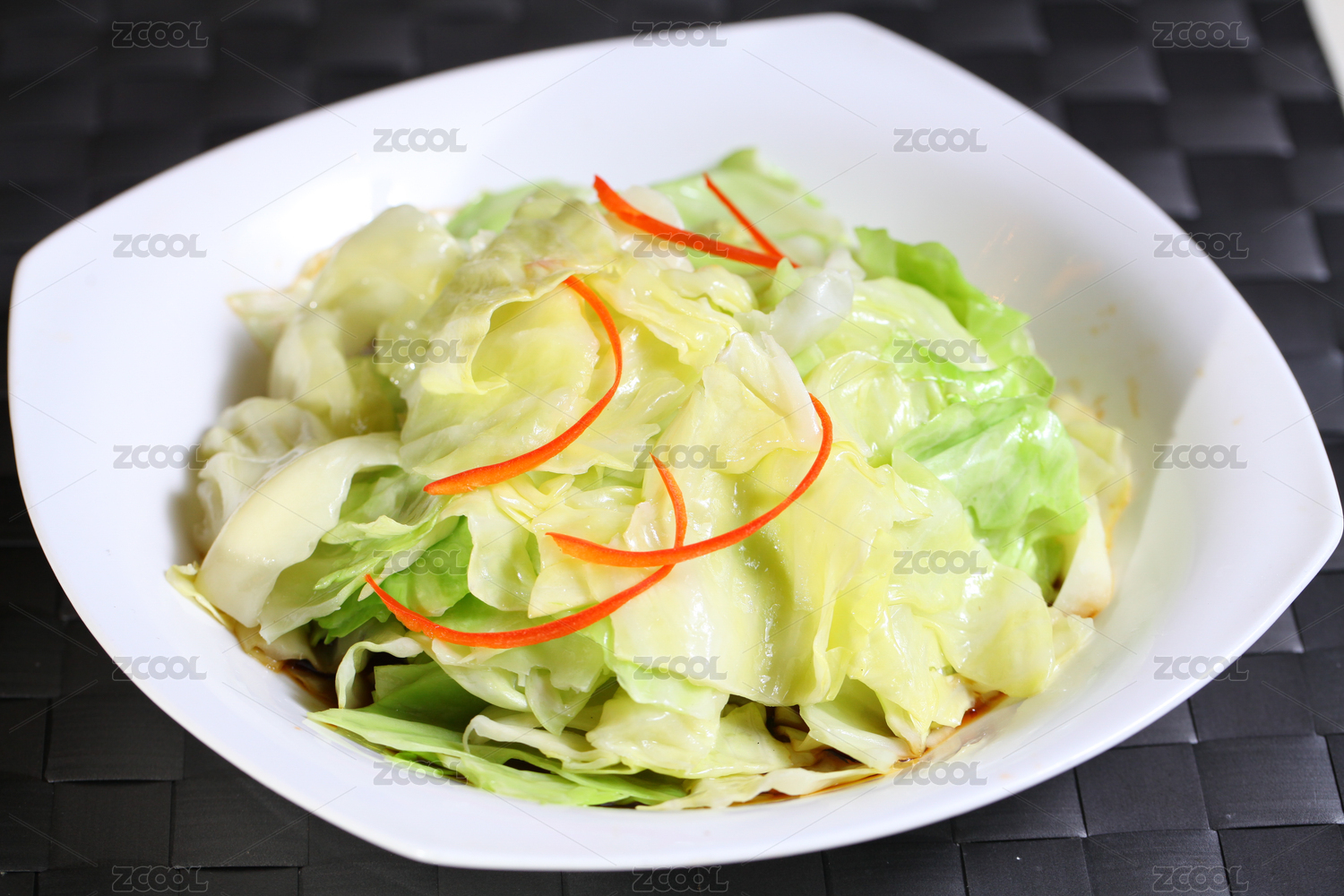 白色盘子里的清炒生菜
