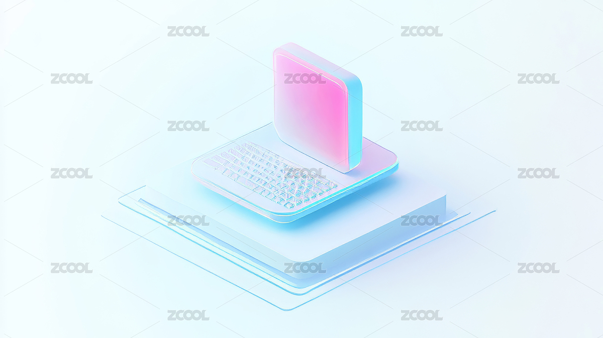粉蓝渐变色的笔记本电脑图标,柔和色调