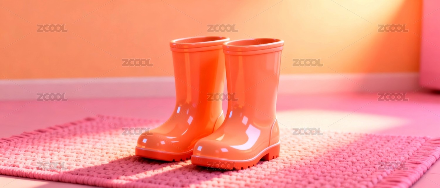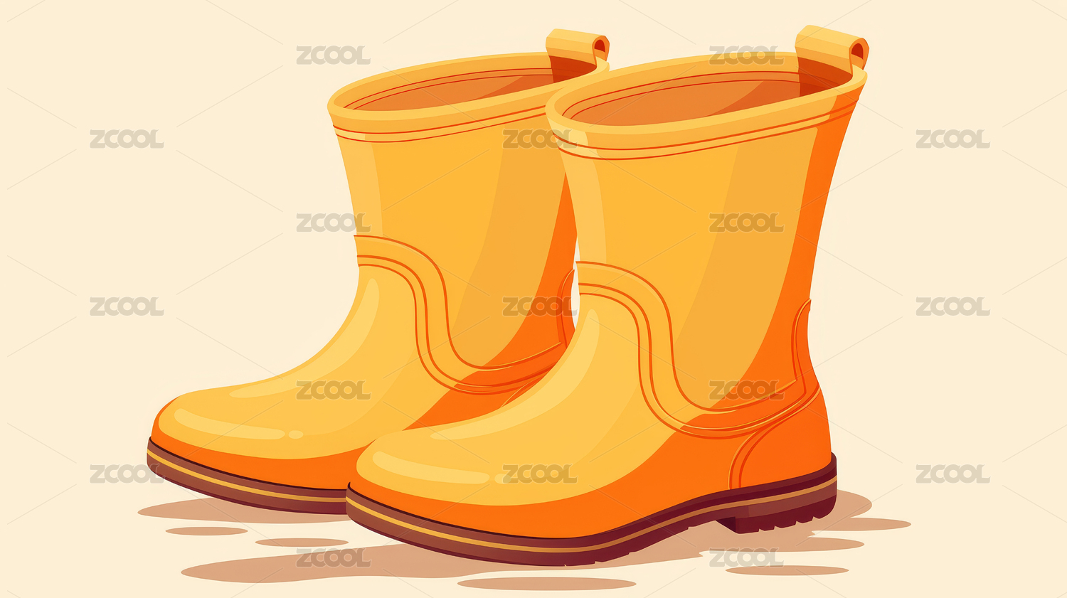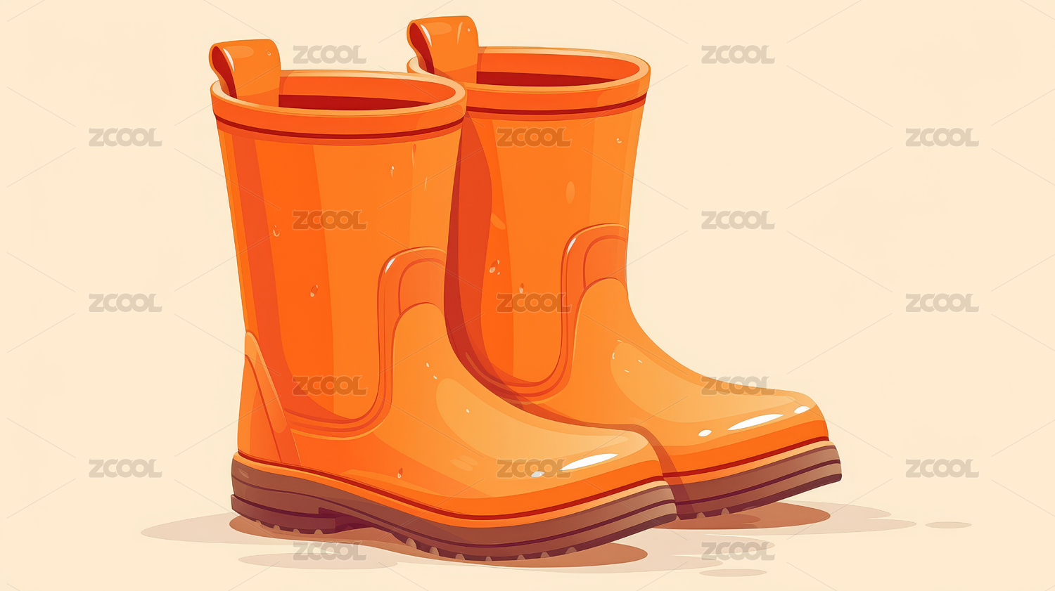 时尚,插画,卡通,潮流,雨靴,橙色,橡胶靴,防水,雨天,户外