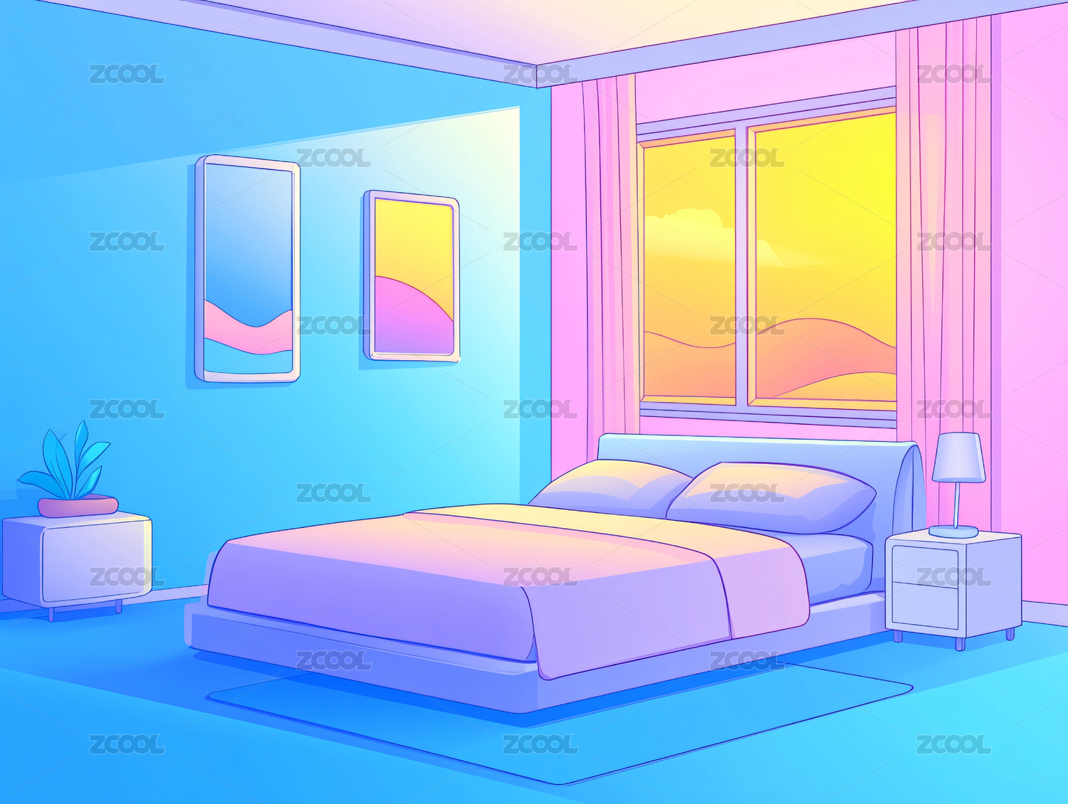 插画,插图,背景,素材,床,卧室,床单,室内,榻,架子床