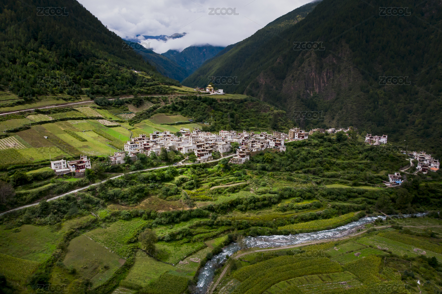 中国四川省甘孜州丹巴县中路藏寨航拍