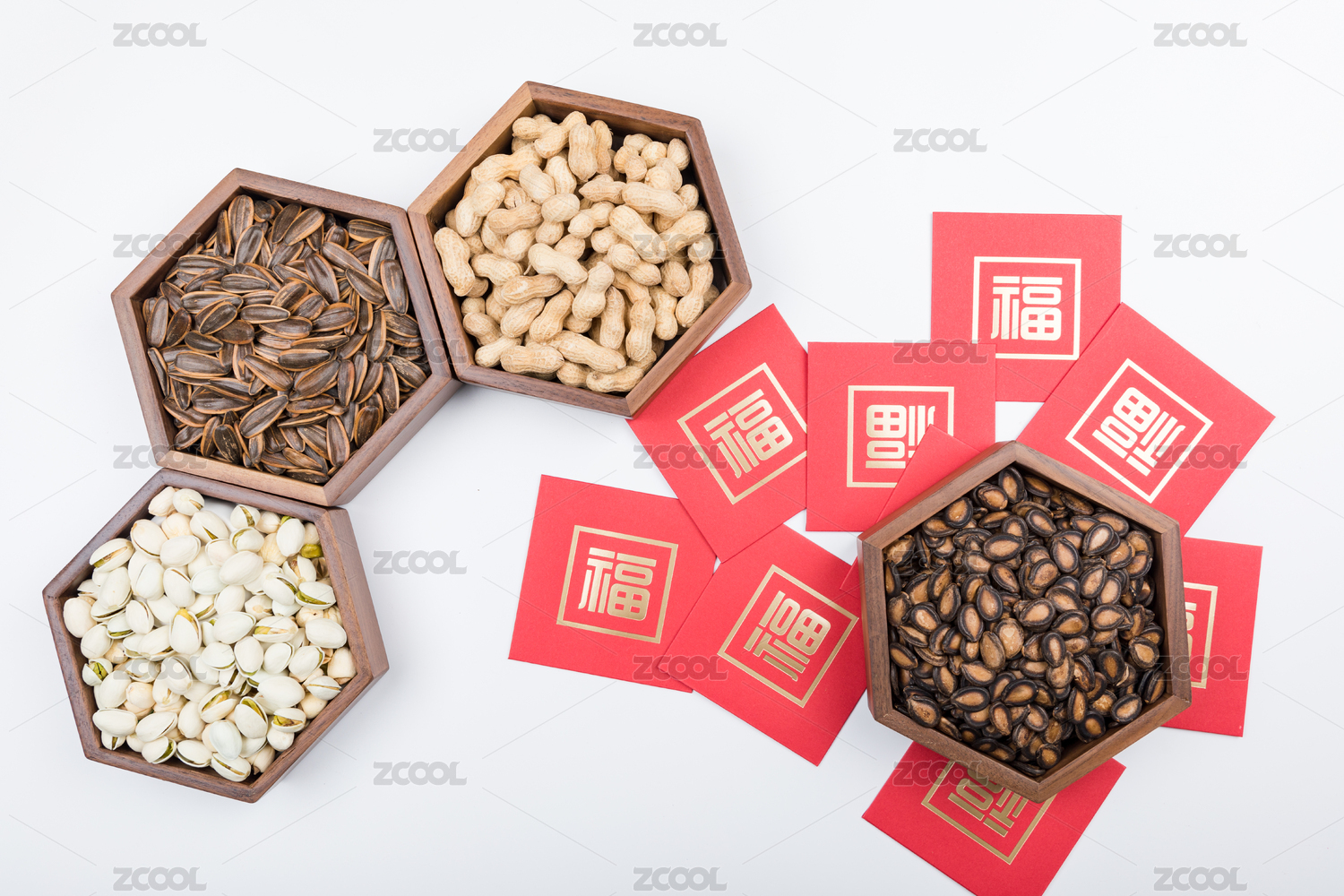 干货,果盘,花生,茶果,白色,白底,茶点,开心果,黑瓜子,美食