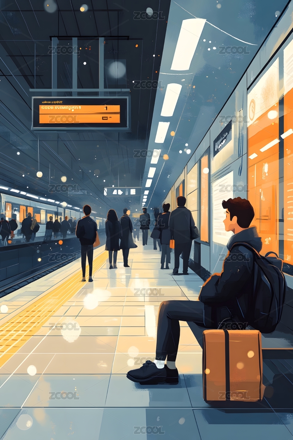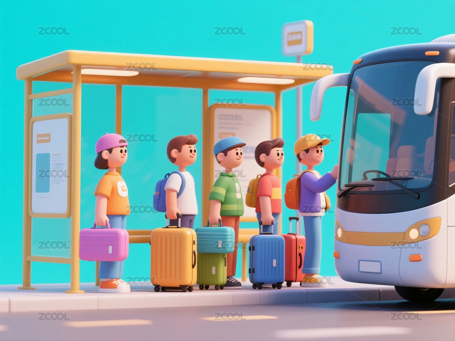 公交站,人群,拥挤,交通,城市,背影,场景,生活,插画,路边
