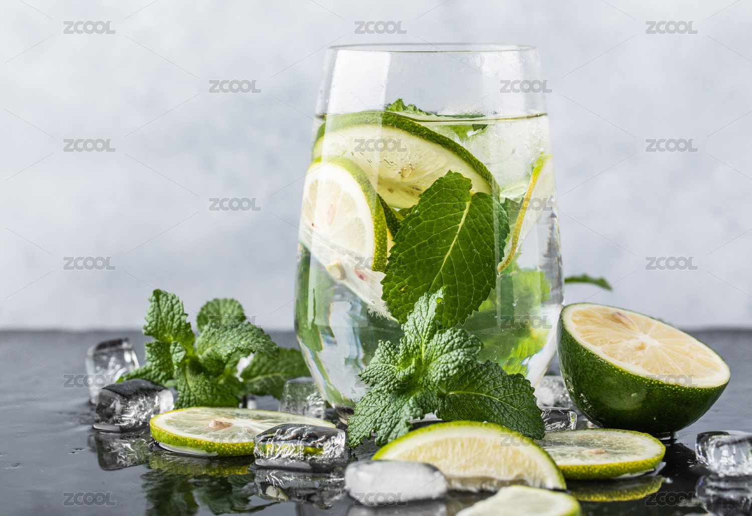 青柠檬,水果,冰块,薄荷叶,切片,夏日,饮料,食材,冰镇,酷爽