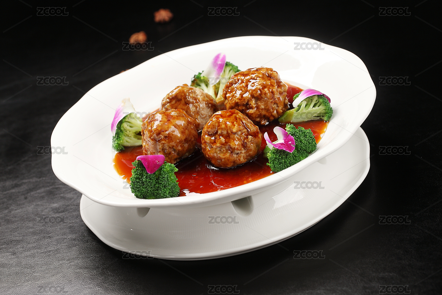 咸蛋黄狮子头,淮扬狮子头,狮子头,蟹粉狮子头,鲍汁狮子头,牛肉狮子头,糯米狮子头,西兰花,荷兰芹,花瓣