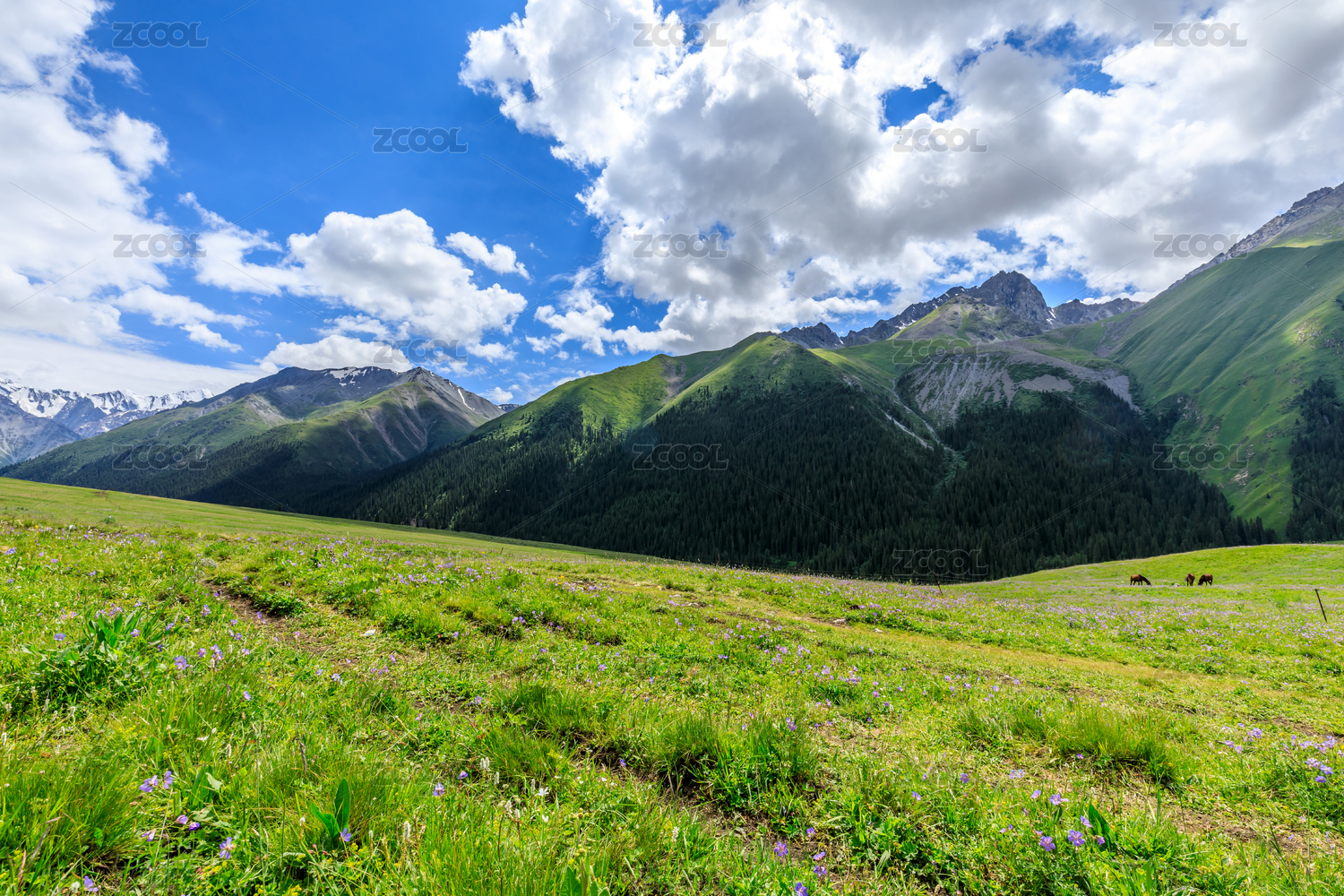 中国新疆独库公路沿途天山山脉森林草原自然风光