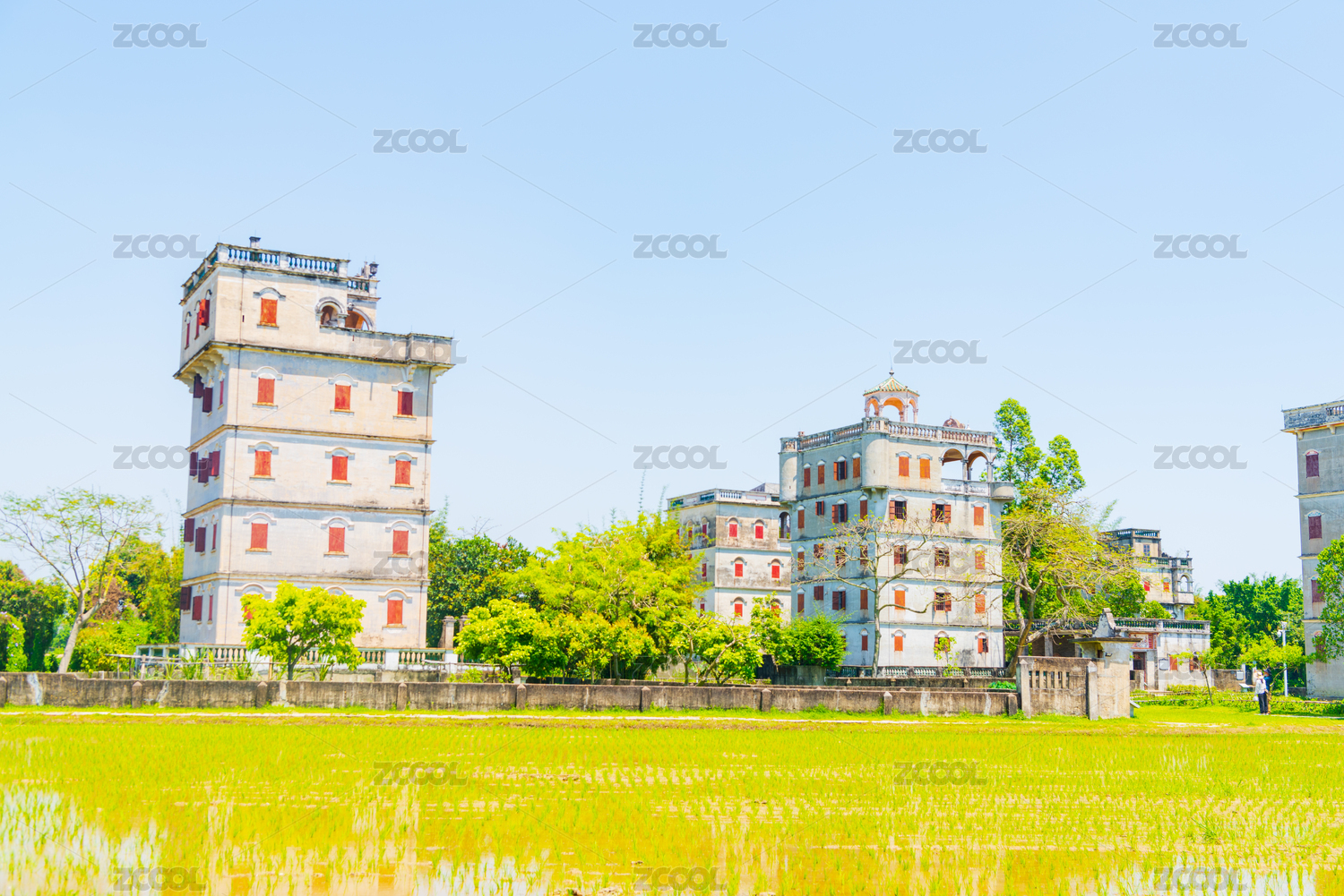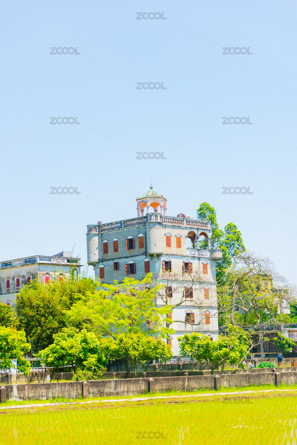 蓝天,晴天,天际线,树,绿色,小路,阳光,建筑,著名景点,房屋