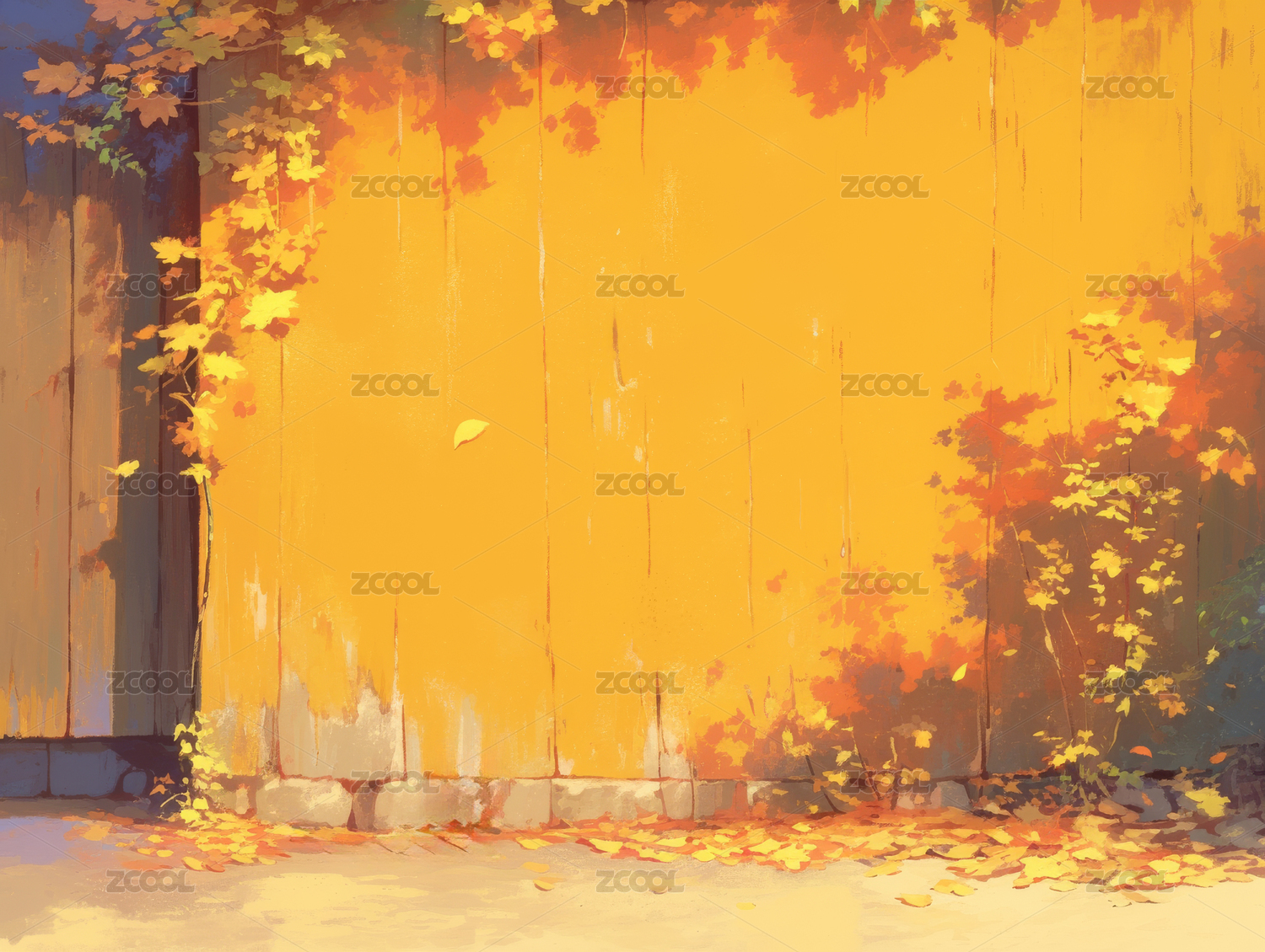 秋日,暖阳,木门,黄色,墙,留白,背景