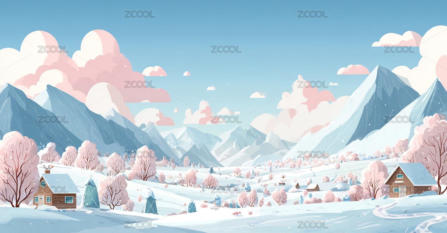 插画,节日,庆祝,无人,房屋,冬天,雪,圣诞节,小寒,大寒