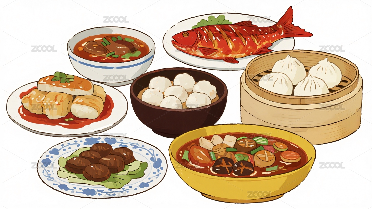 国潮,重庆特色,美食,小吃,九宫格火锅,担担面,酸辣粉,麻花,汤圆,抄手