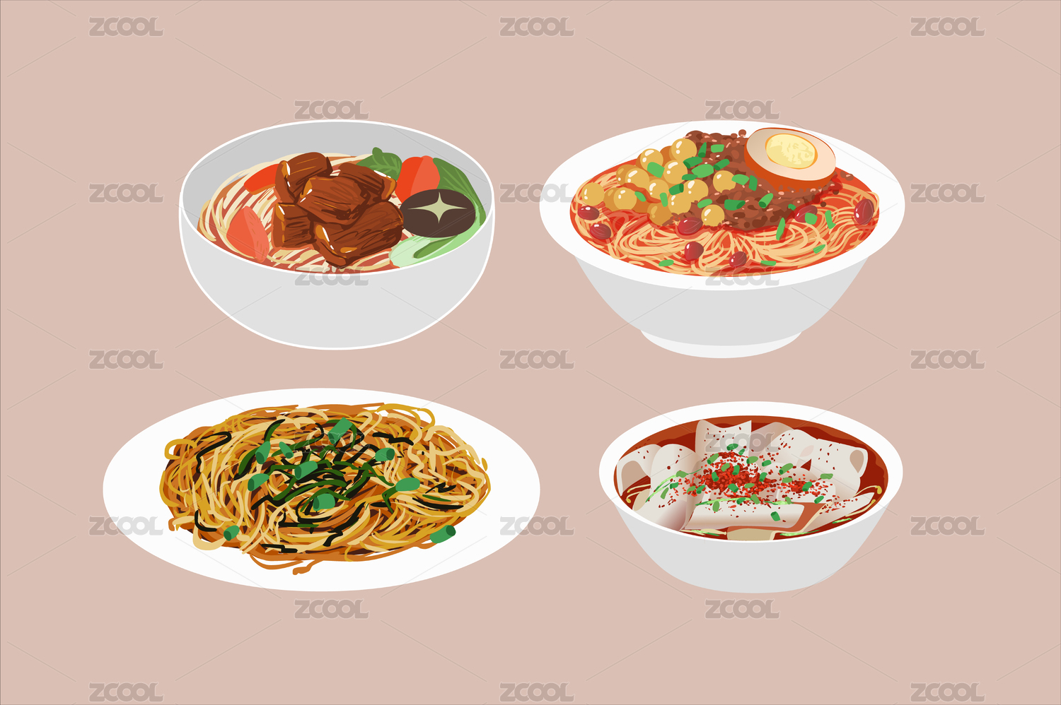 陕西特色美食凉皮肉夹馍泡馍 无缝拼接图案
