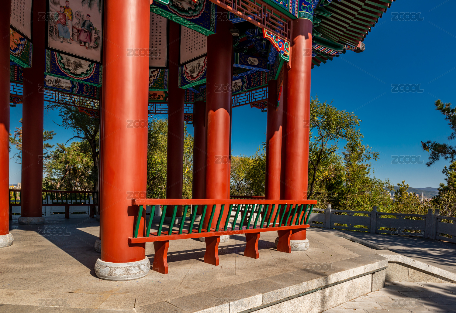 吉林市炮台山文化主题公园上凉亭柱子局部特写