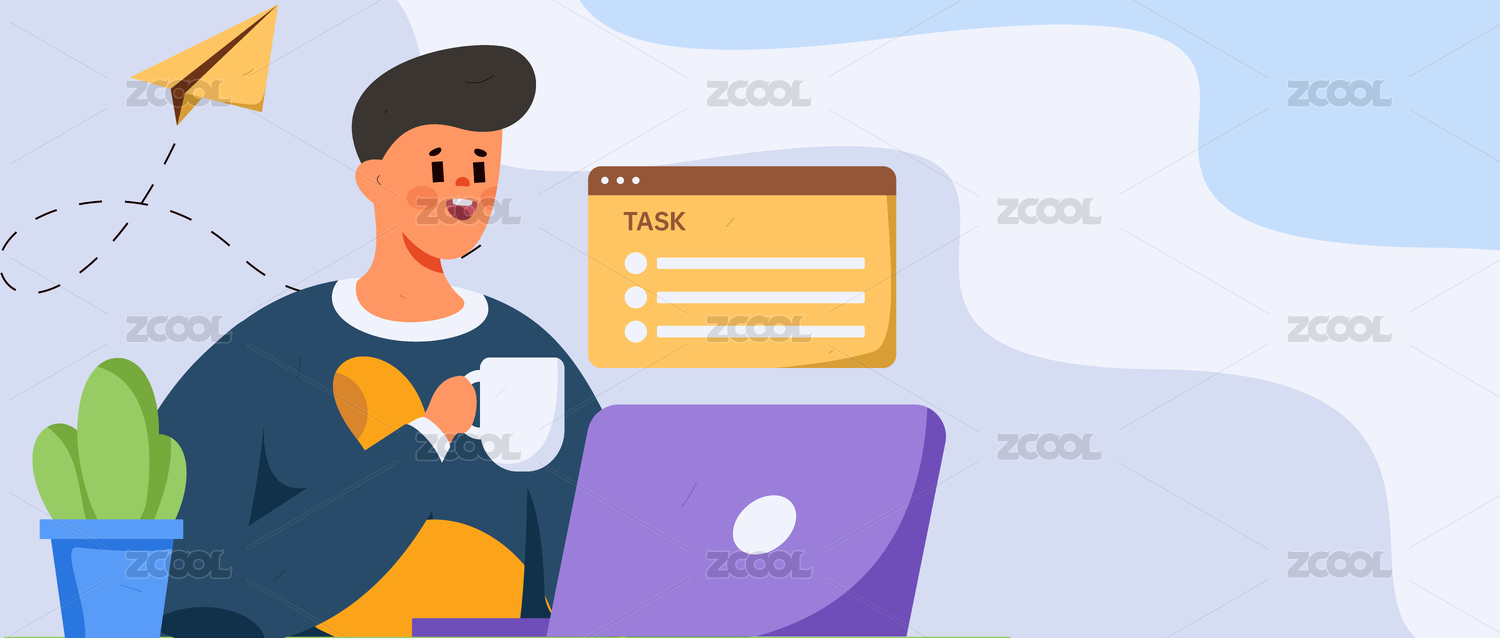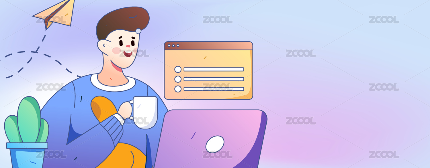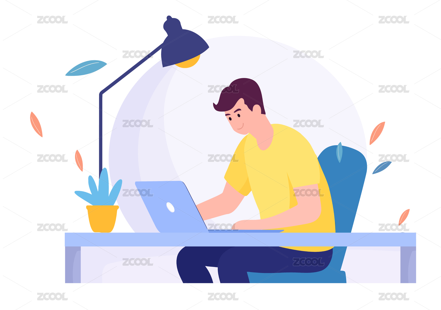 白领男子通过电脑查看邮件获取更多信息,概念插画
