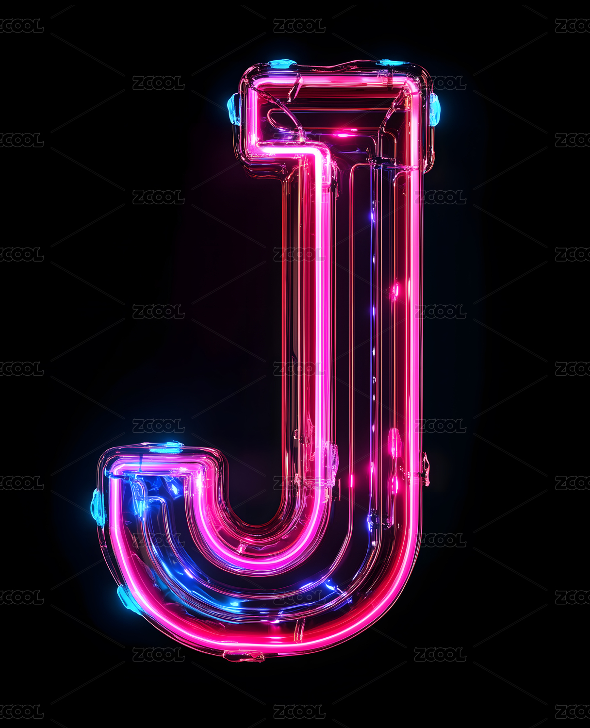 三维立体霓虹英文字母J