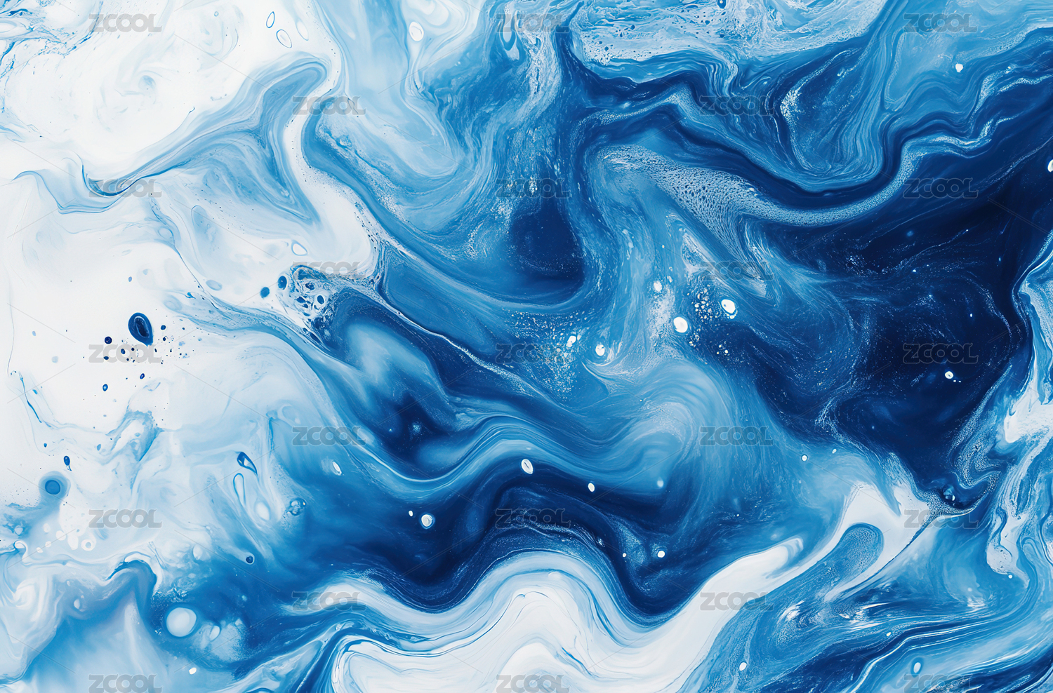 蓝色颜料涂抹在白底上形成的抽象纹理背景