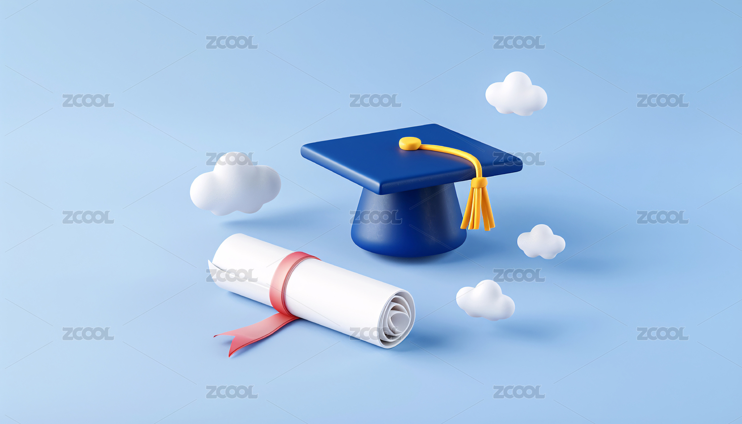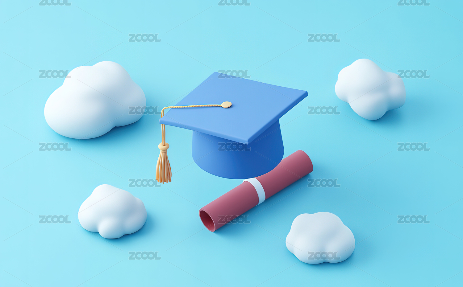 毕业典礼毕业帽庆祝学位3d渲染背景