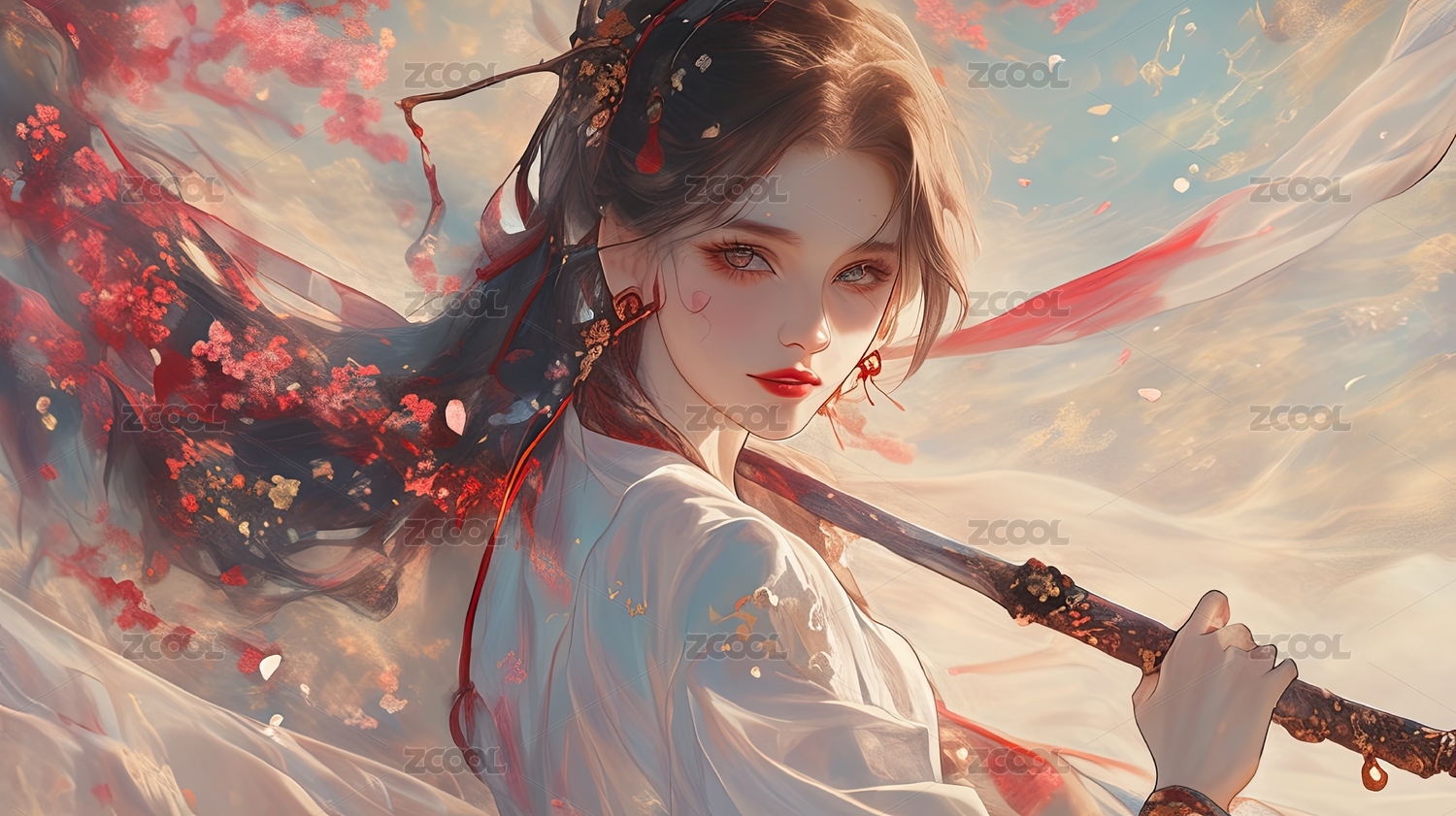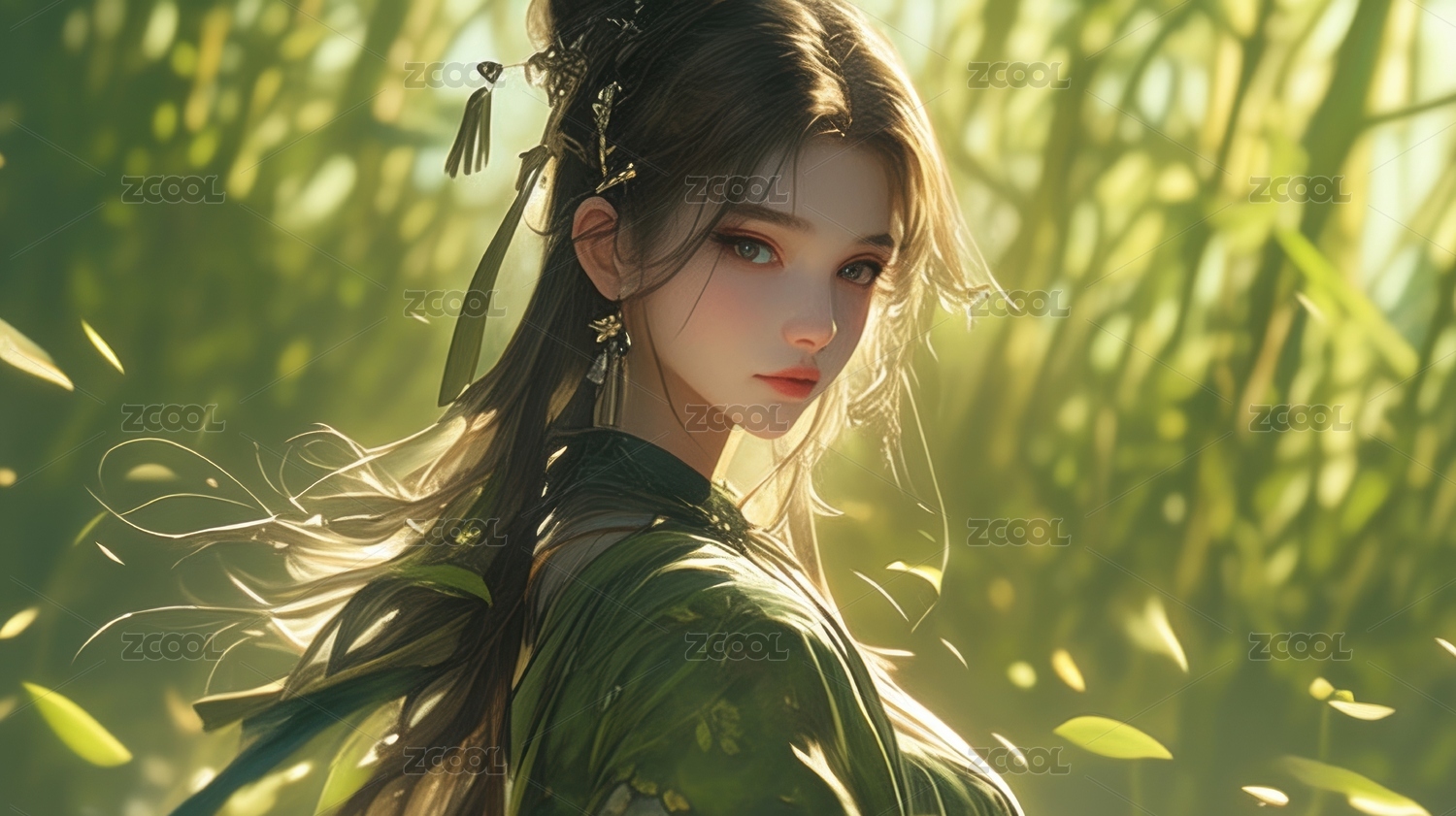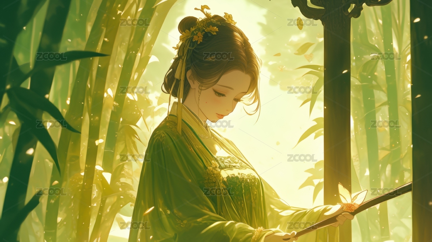 中国风,国潮风,3D,美女,古代,插画,卡通