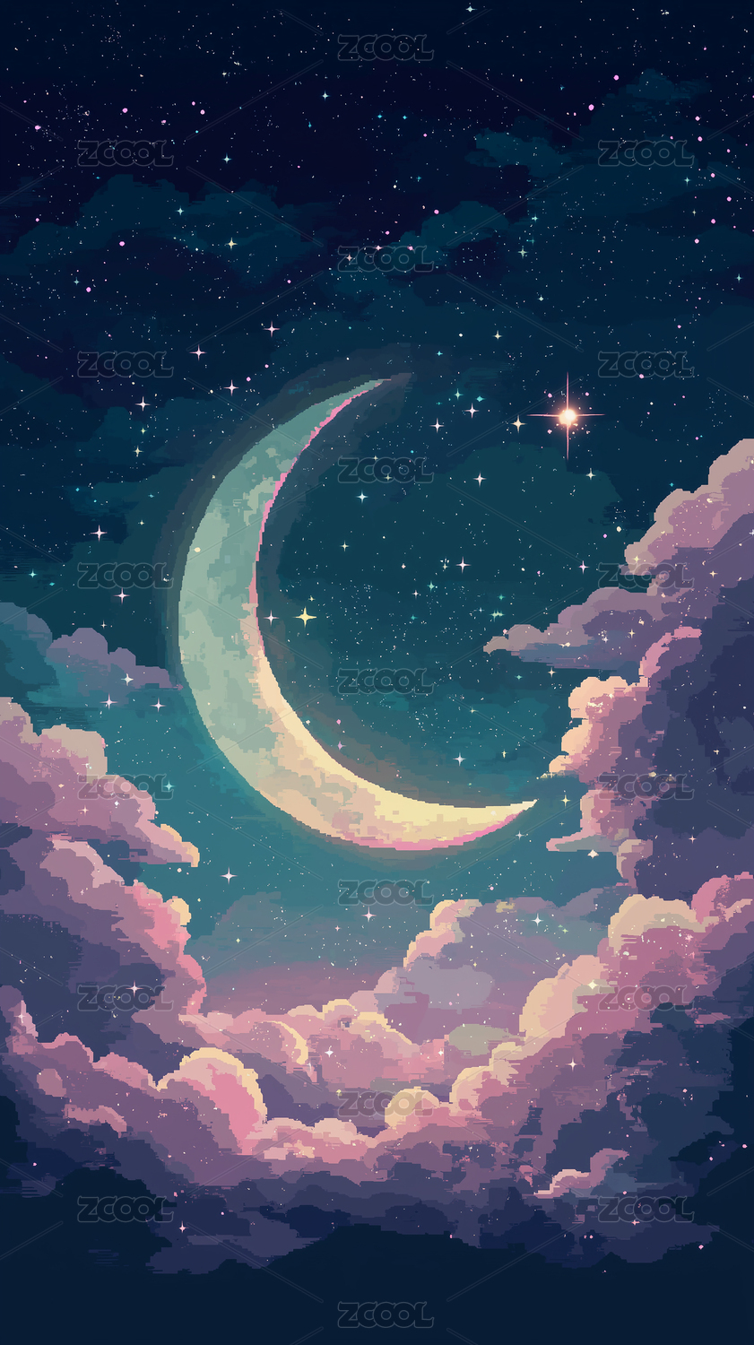 像素风月夜星河梦幻夜空