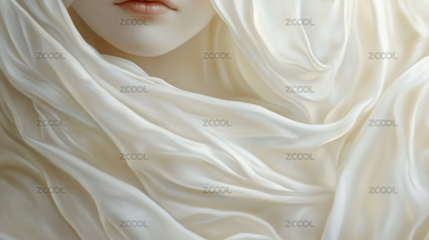 梦幻般的纱巾与女性面容