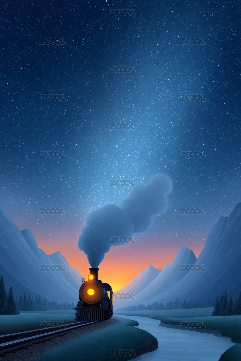 自然风景户外旅行房屋房子铁轨场景节气插画