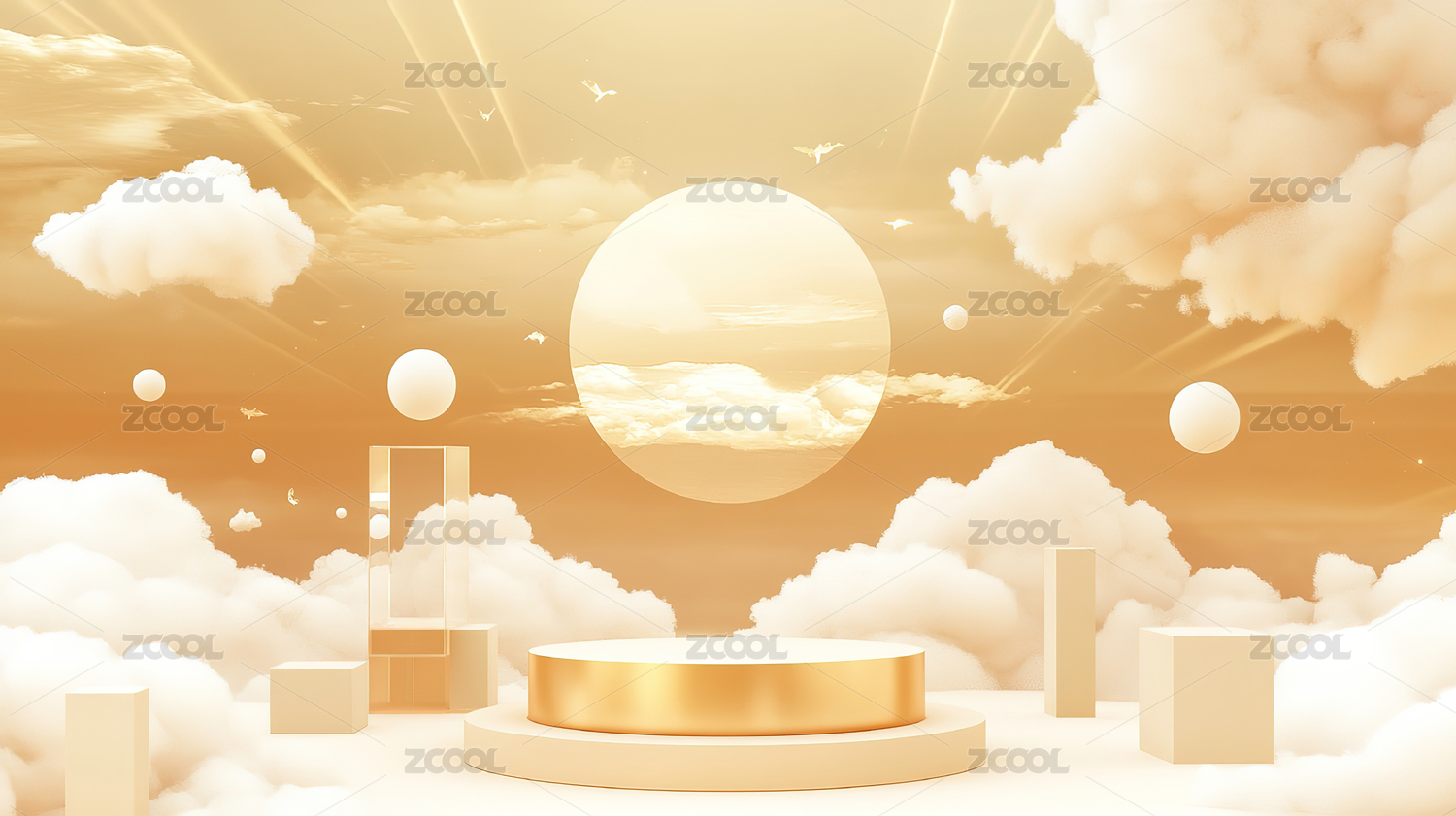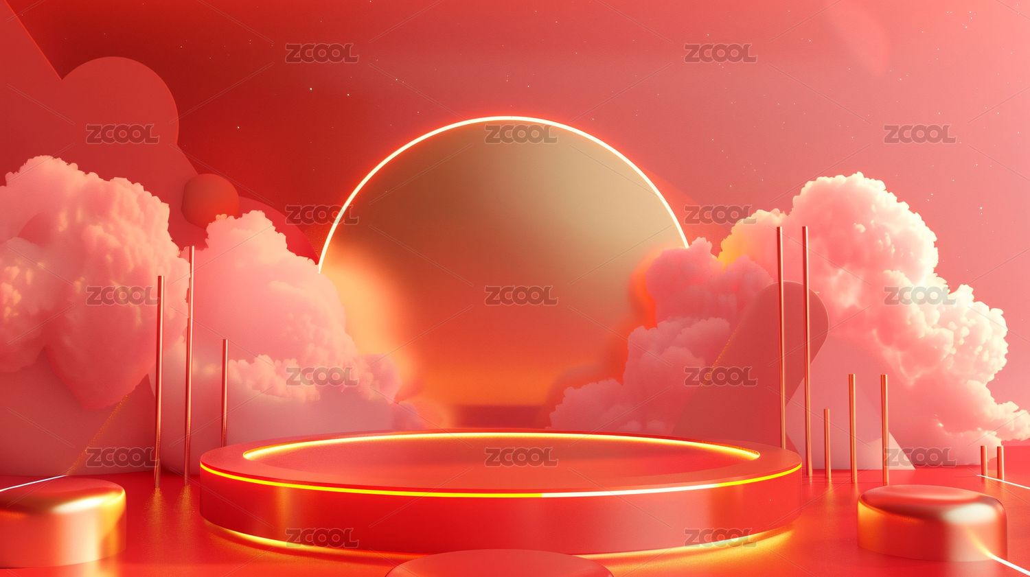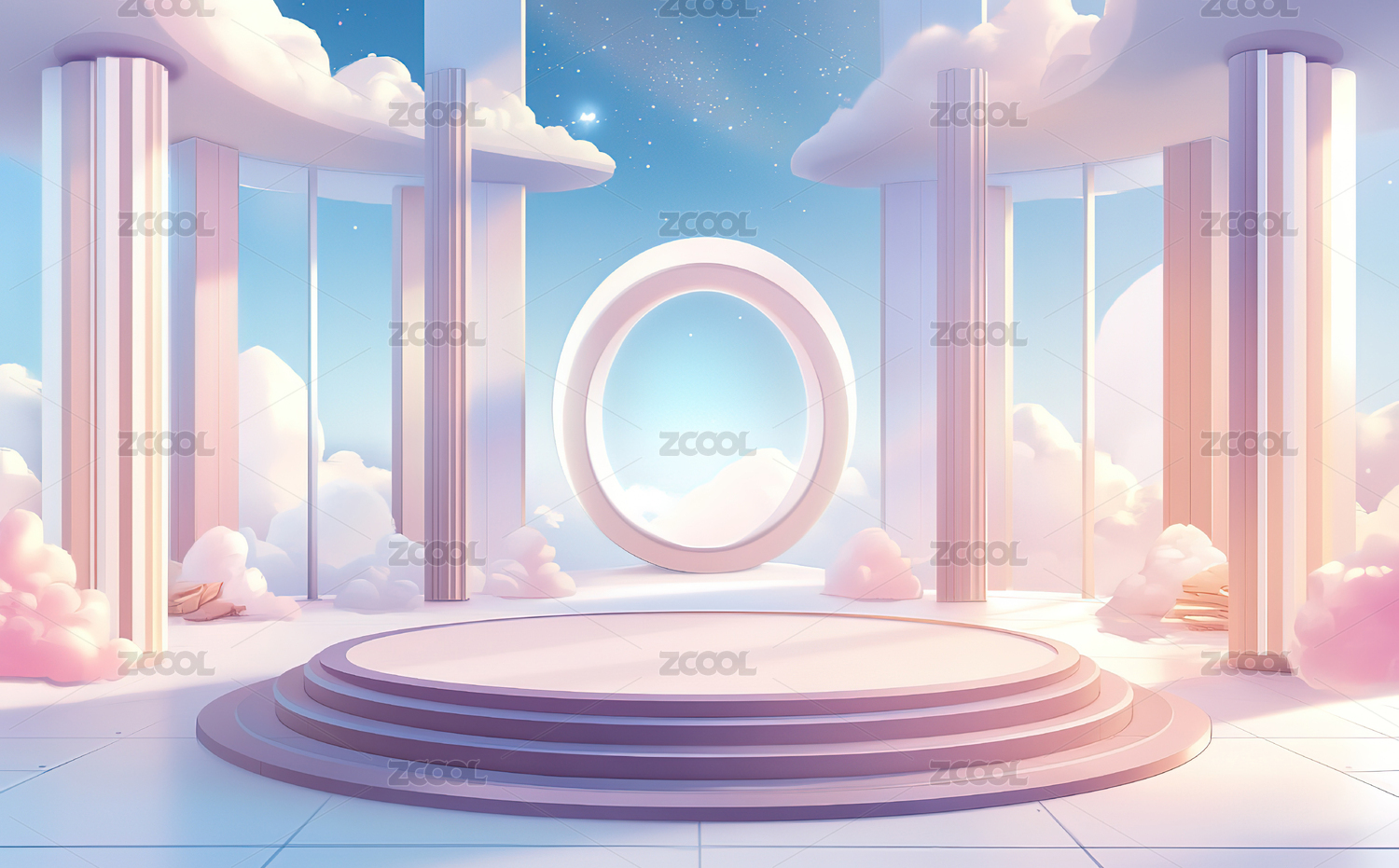 粉云环绕的圆形多层展台