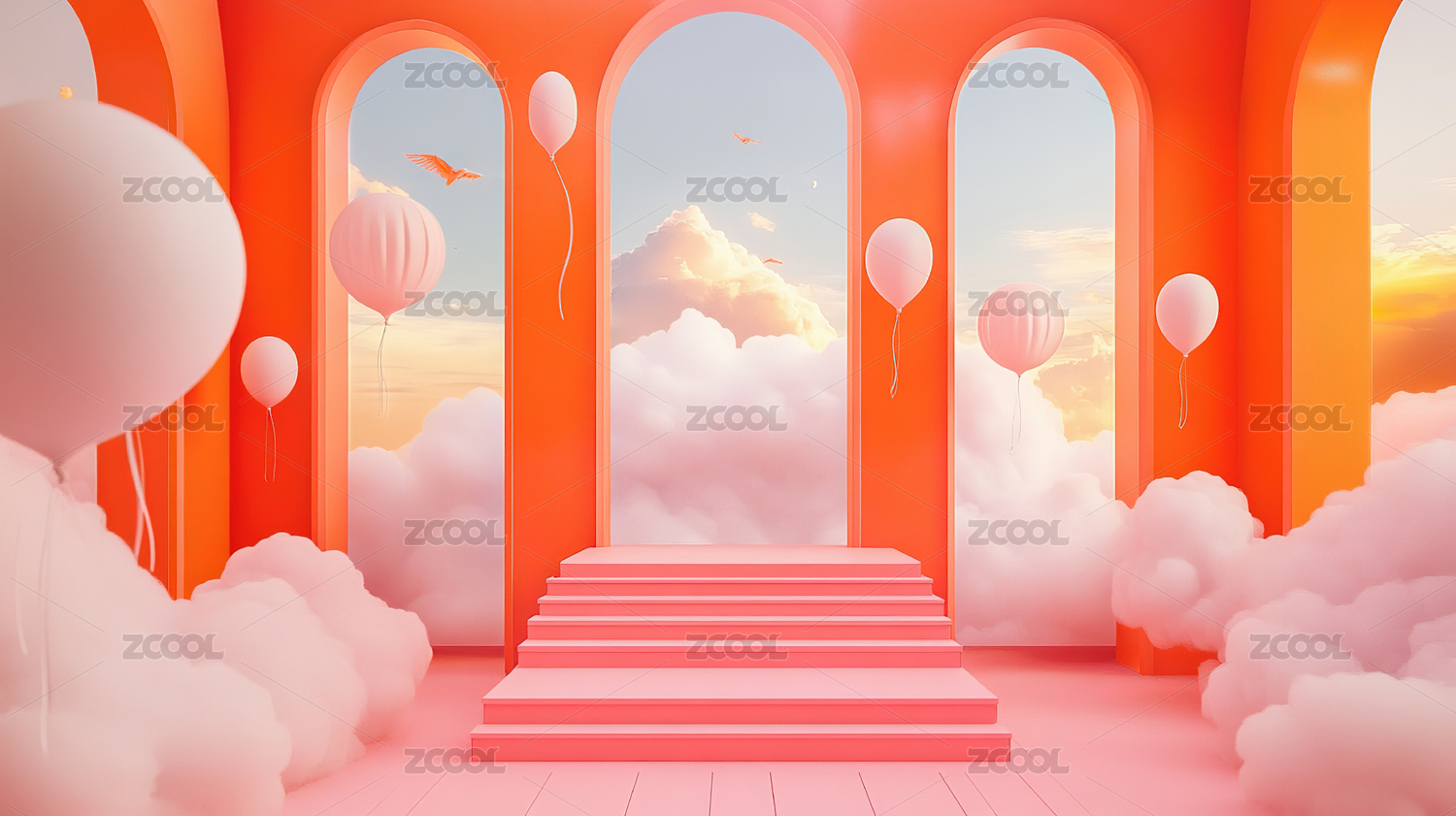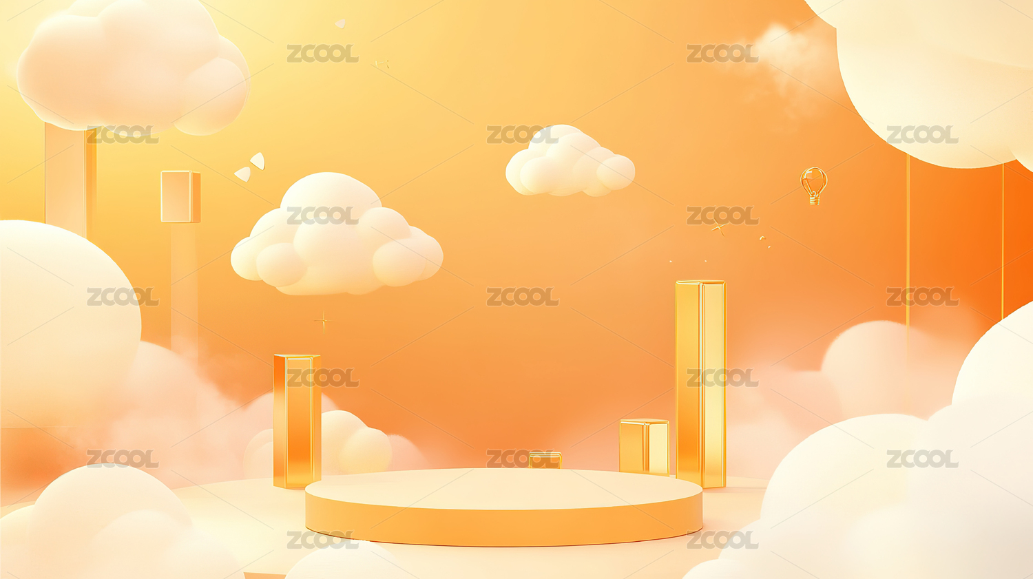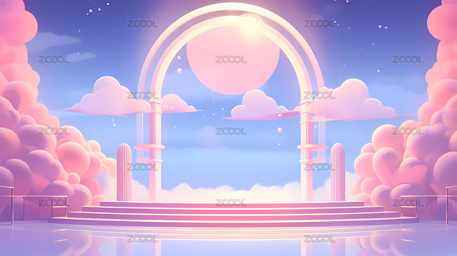 粉云环绕的圆形多层展台
