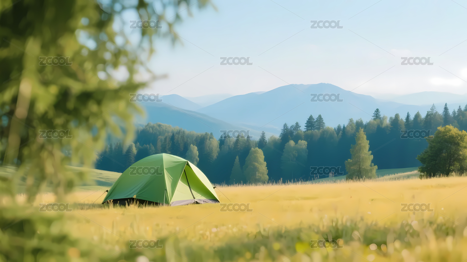 绿色帐篷与户外景观