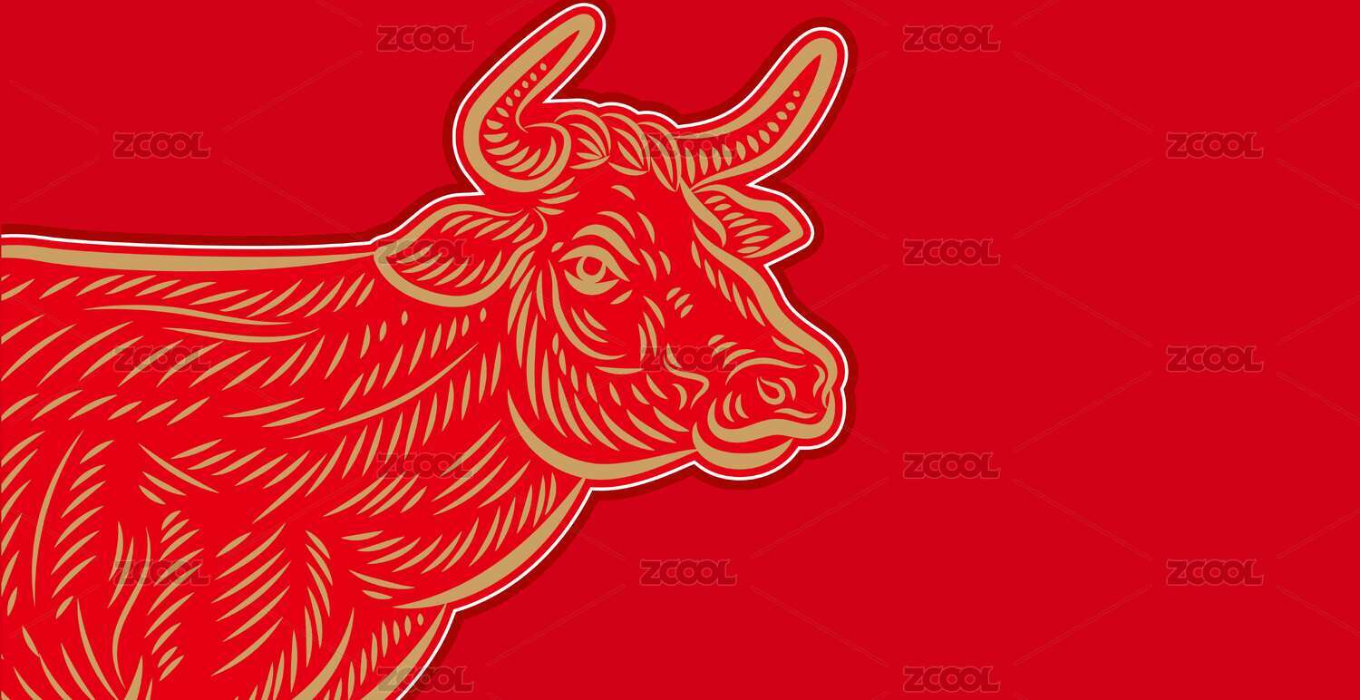 线描牛线条牛素描牛金边牛牛年喜庆高级感