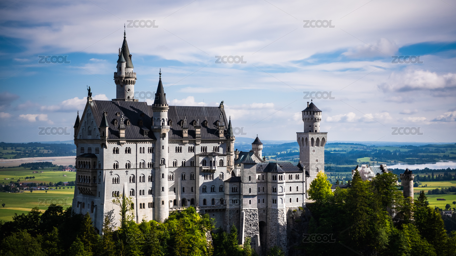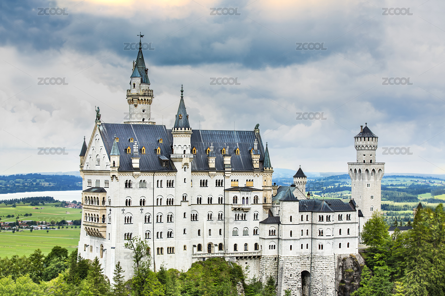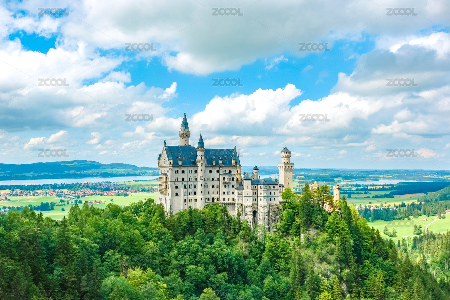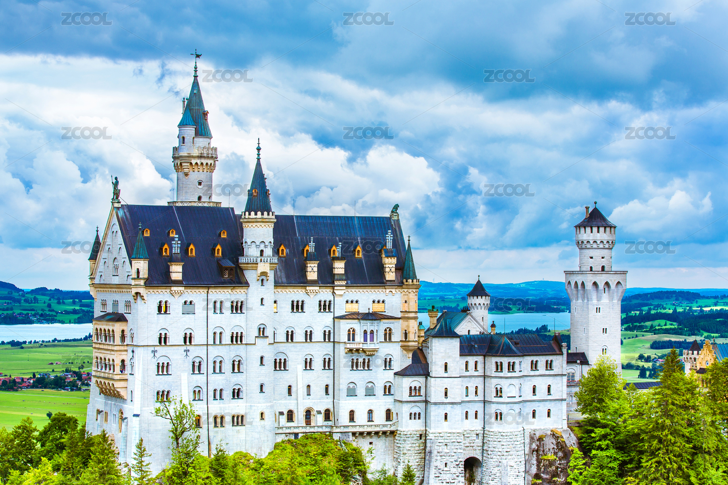 欧洲德国巴伐利亚西阿尔卑斯山麓的天鹅城堡