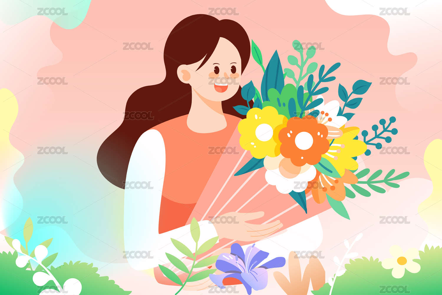 感恩母亲节母子拥抱陪伴儿童节亲子活动插画