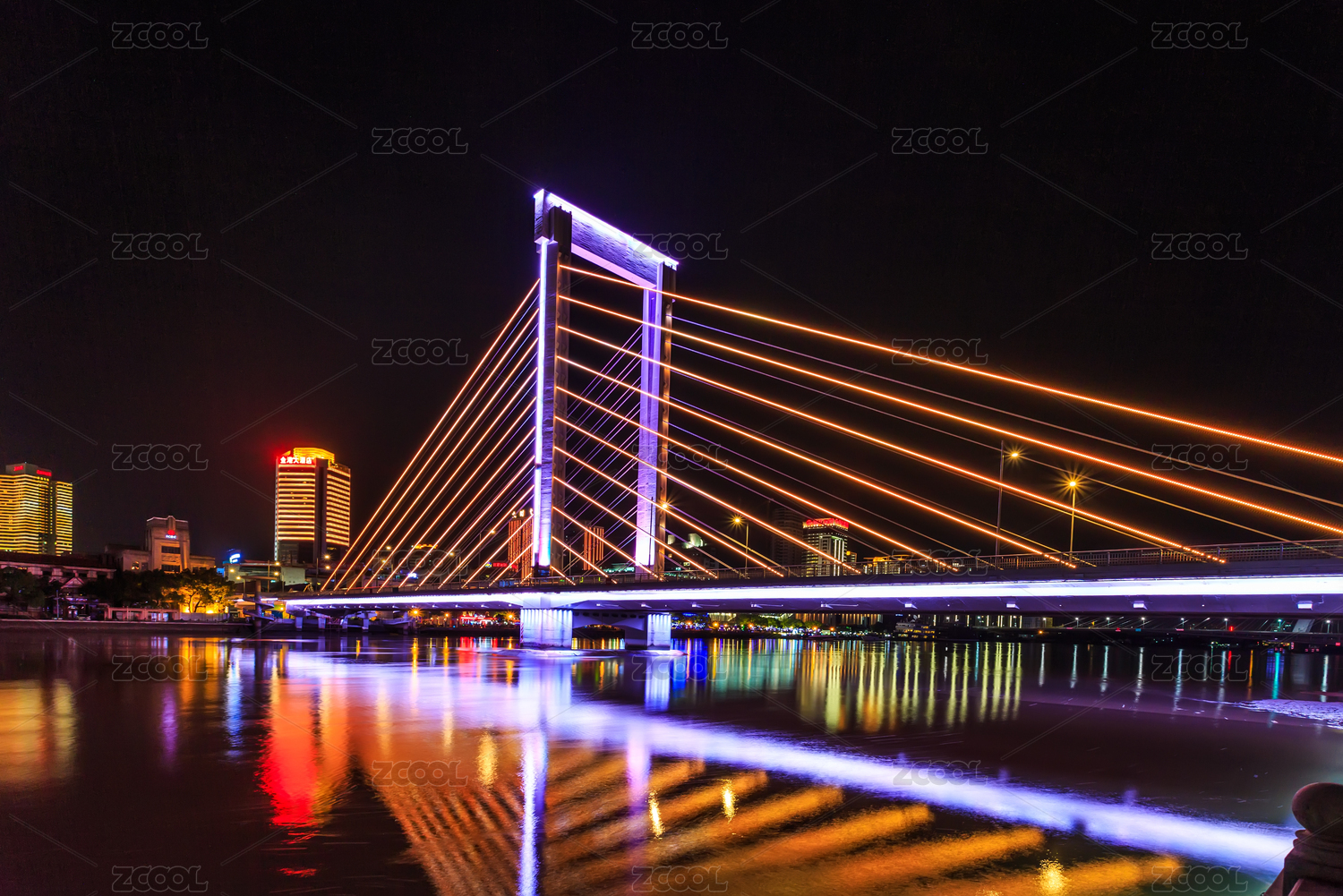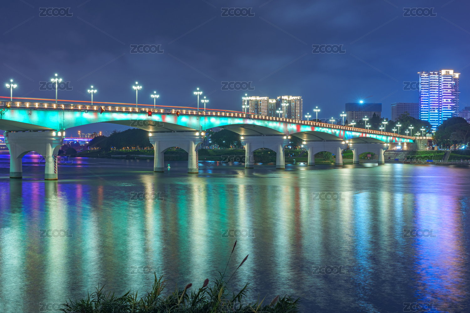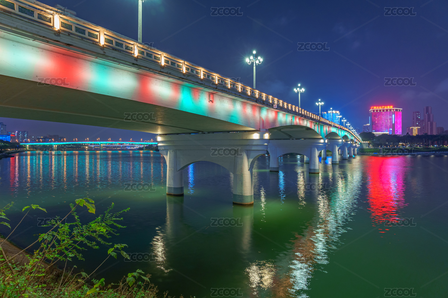 南宁邕江大桥与滨江城市高楼建筑夜景灯光