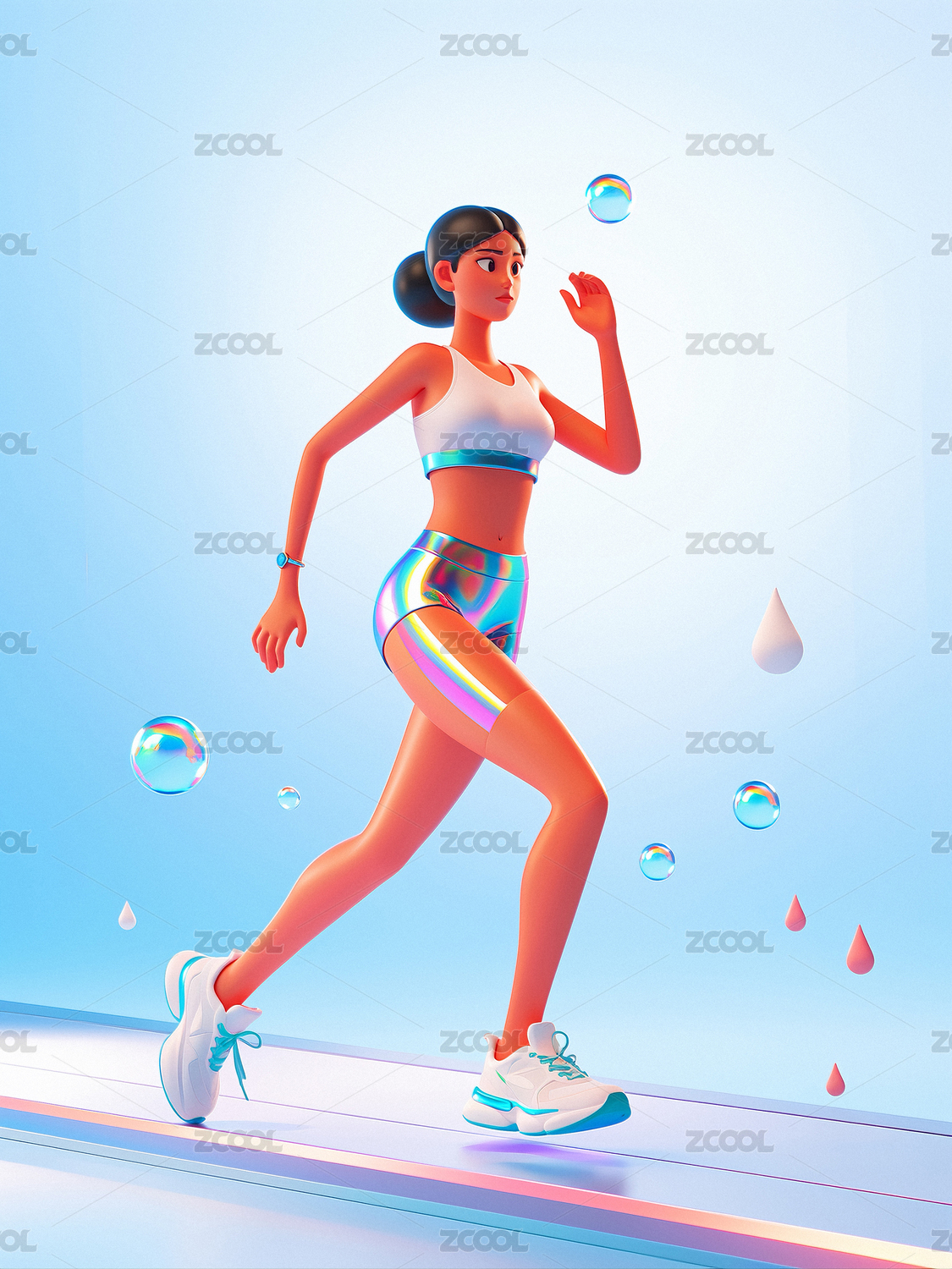 3D体育运动跑步主题人物插画