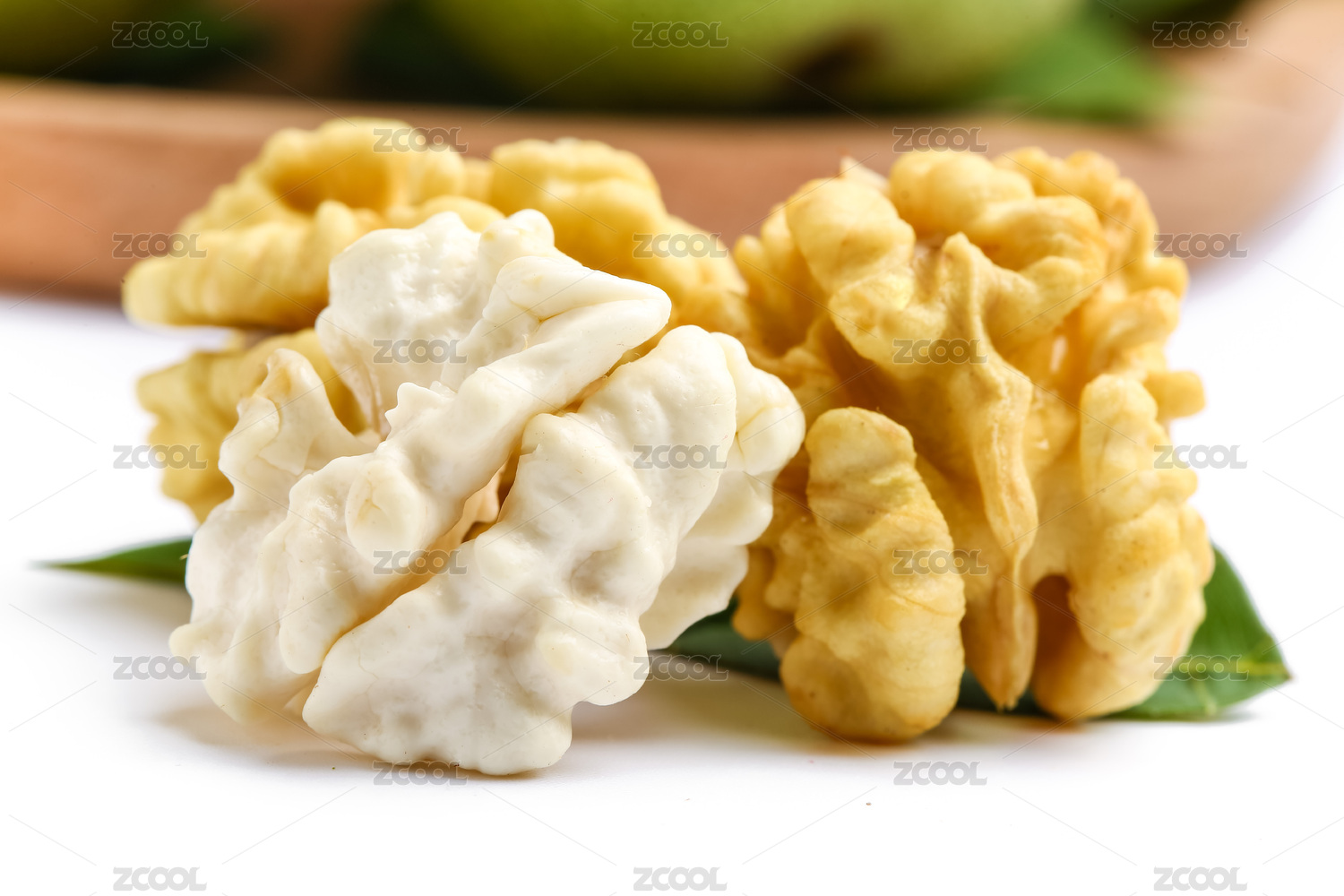 白底上放着核桃仁