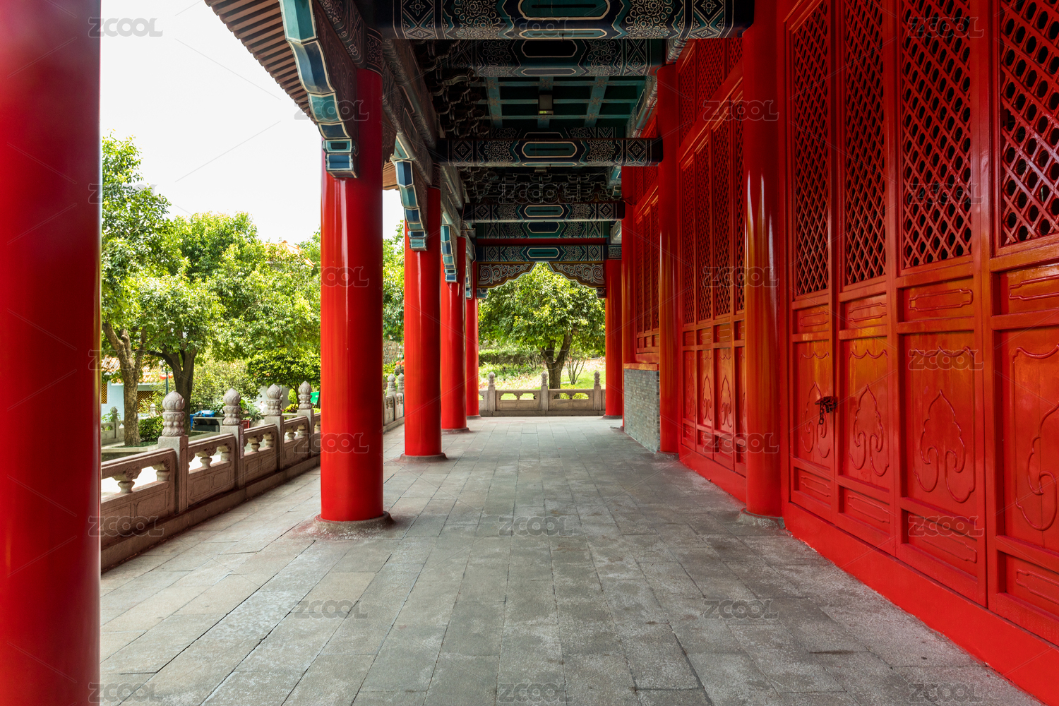 中国广东省广州市莲花山风景区莲华禅寺走廊
