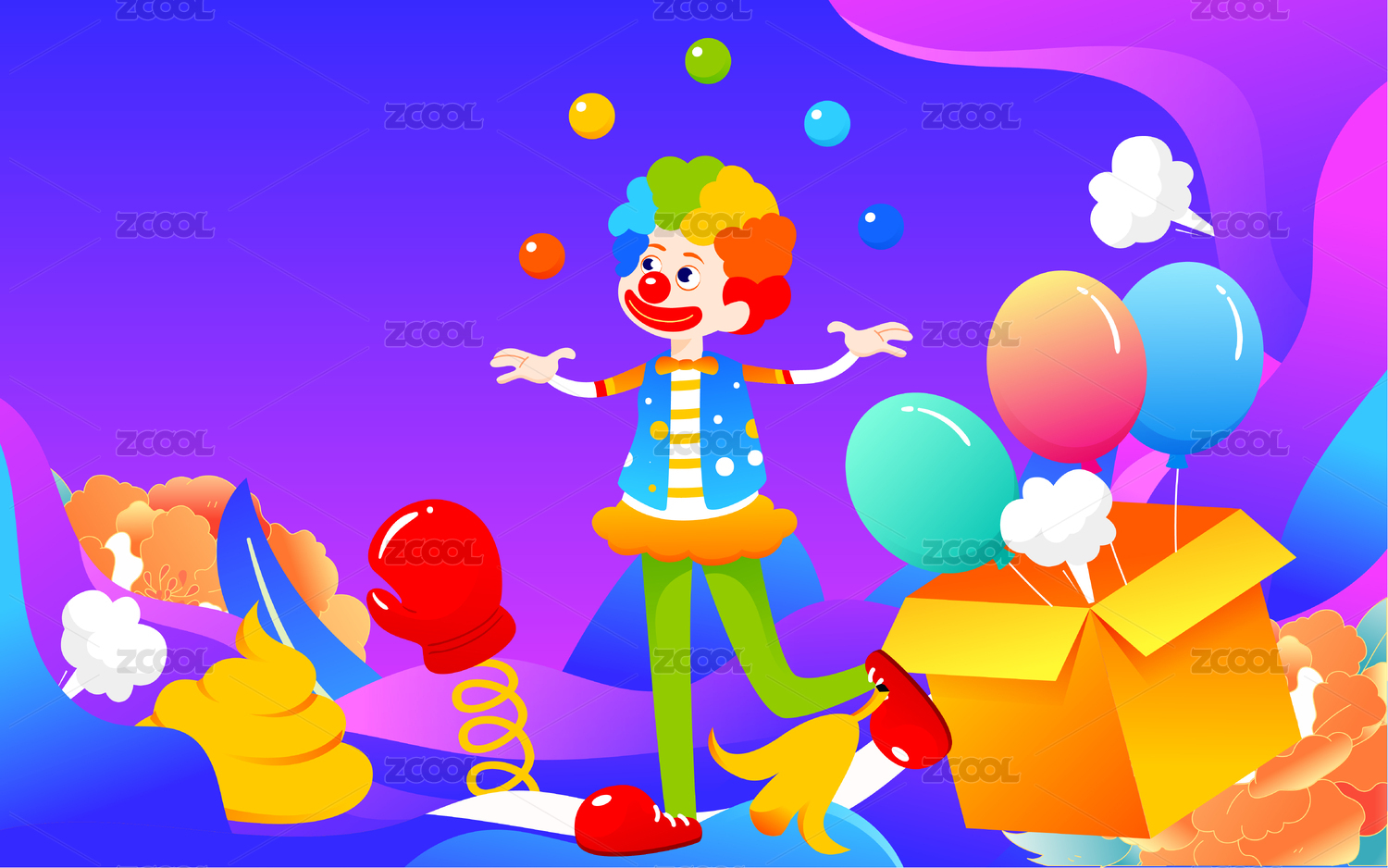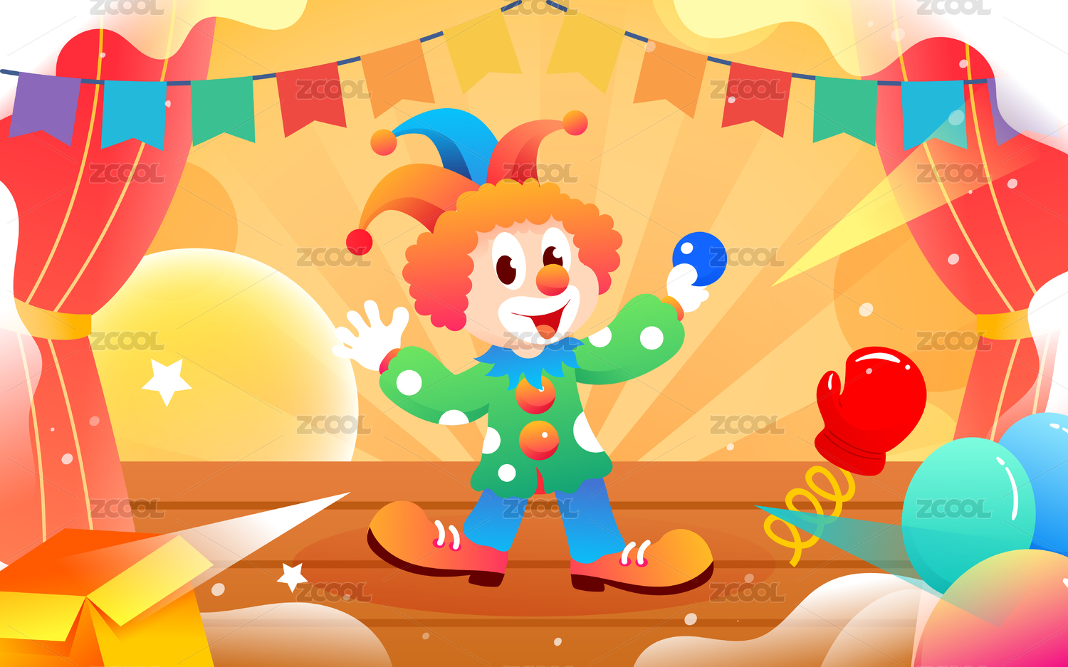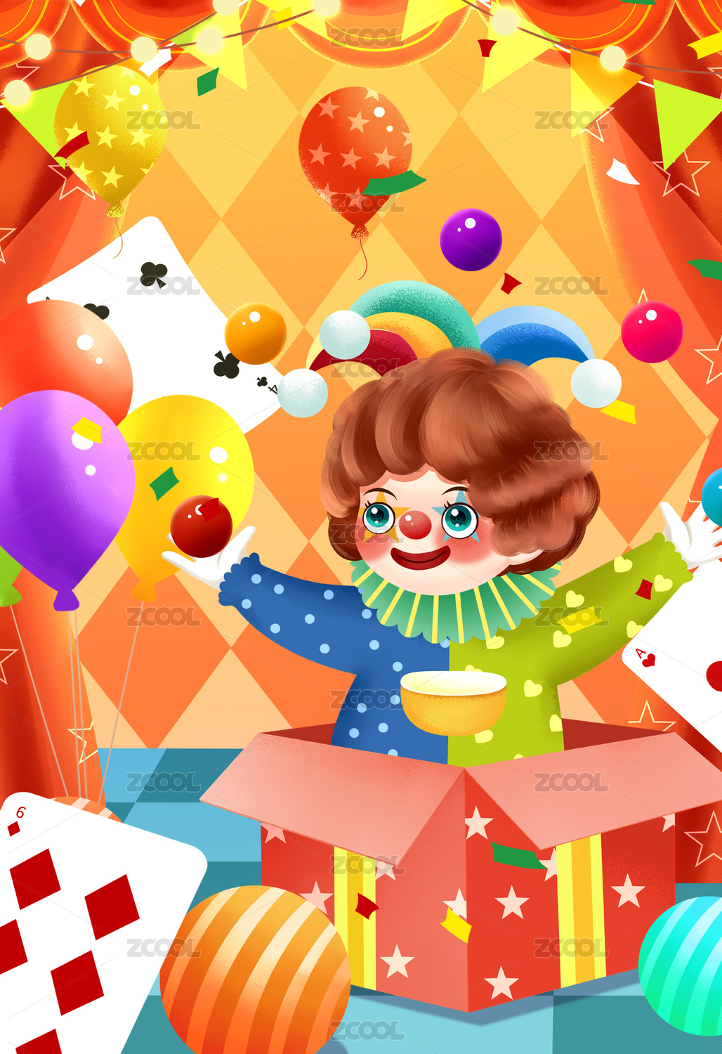 愚人节马戏团可爱小丑插画