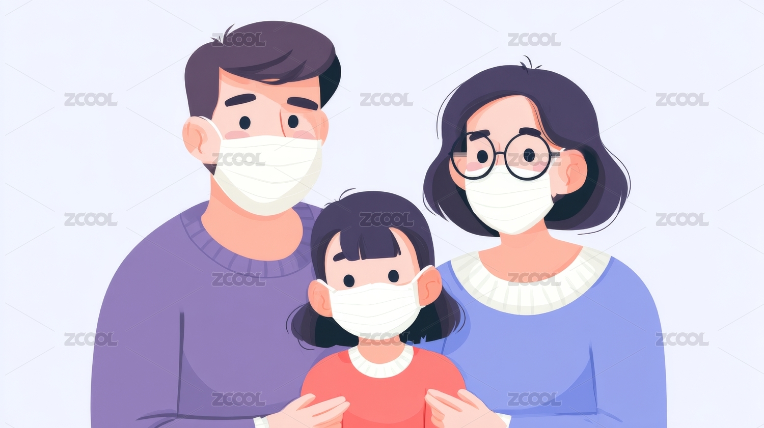 卡通一家人家庭亲子健康防疫保险矢量插画