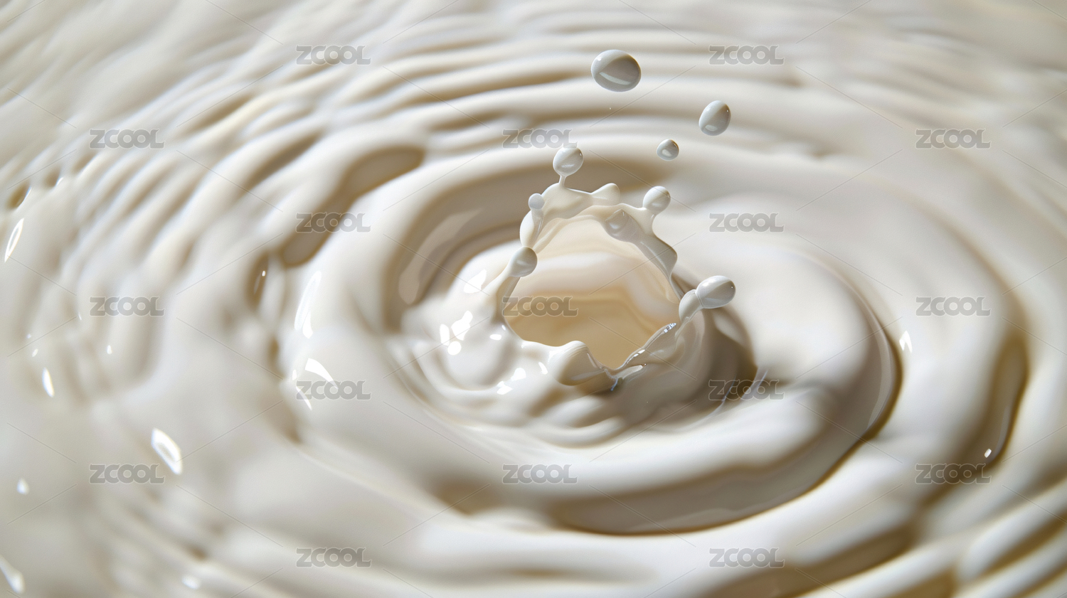 倒牛奶溅起的水珠和波纹,近景,牛奶饮品广