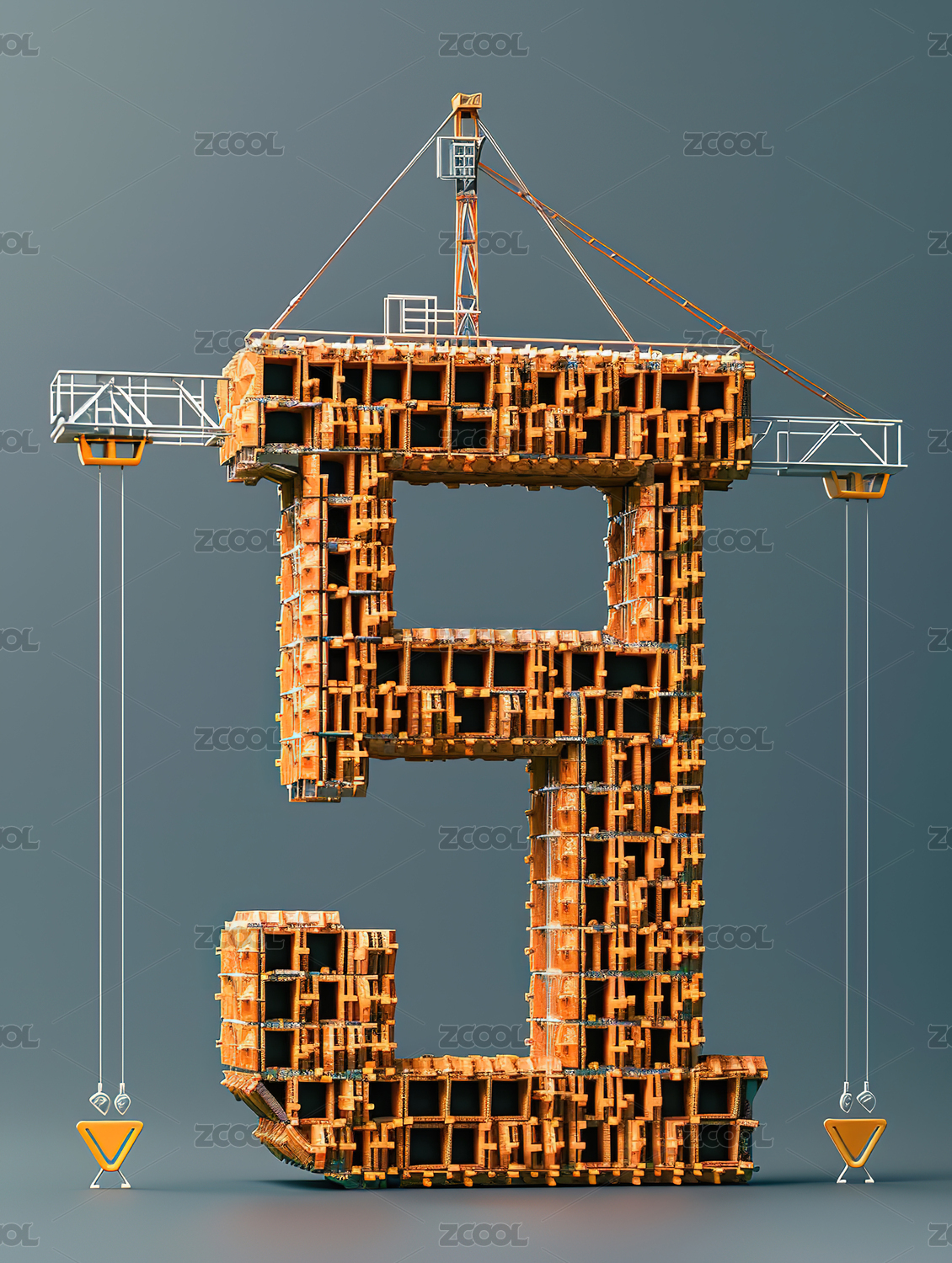 砖砌三维数字51劳动节3D渲染概念插图