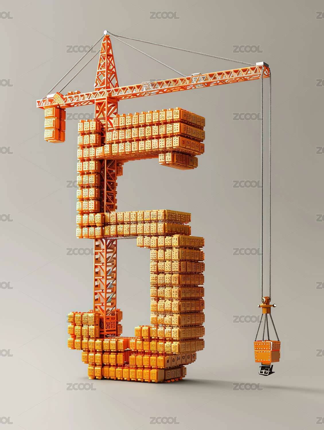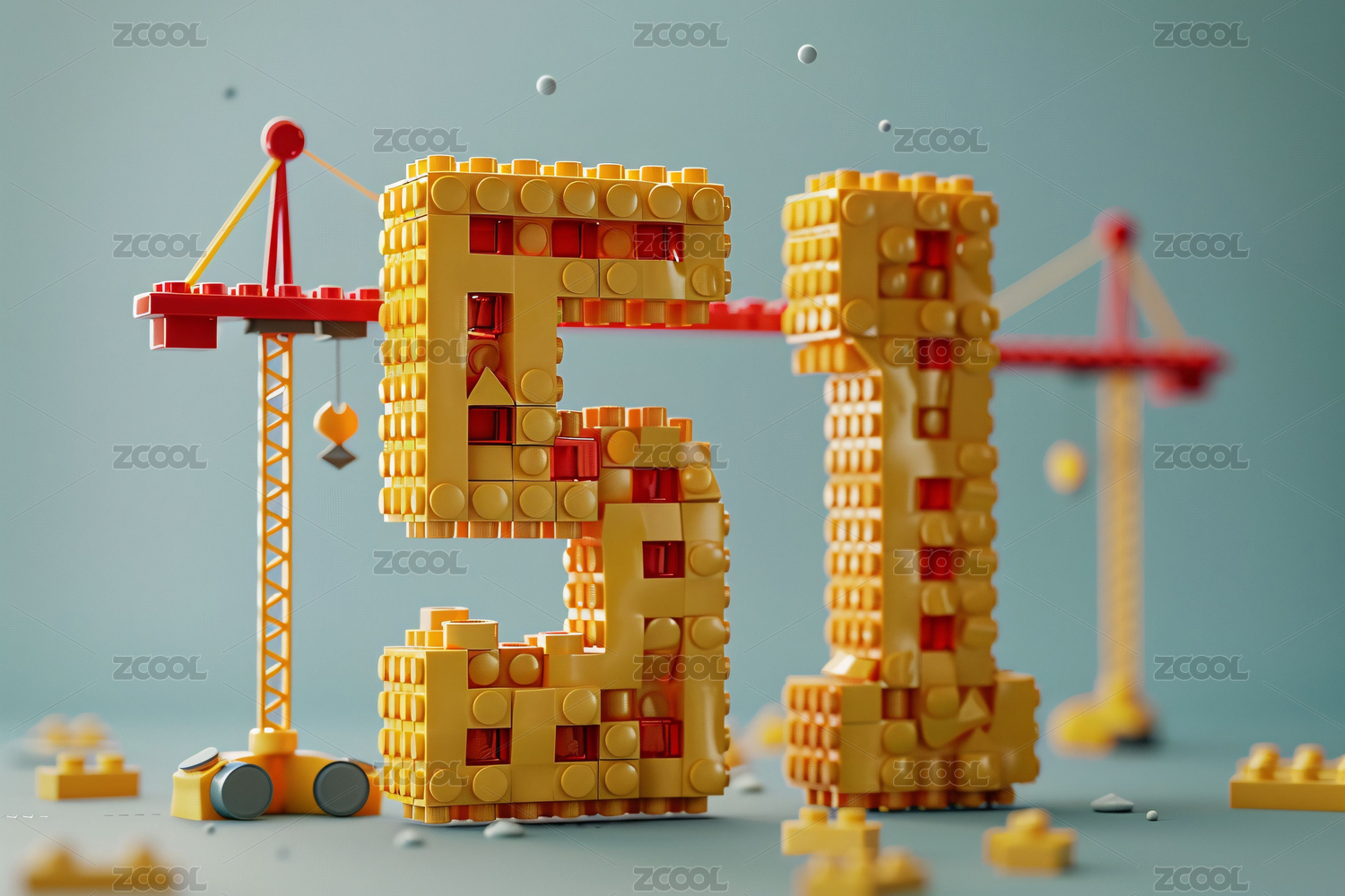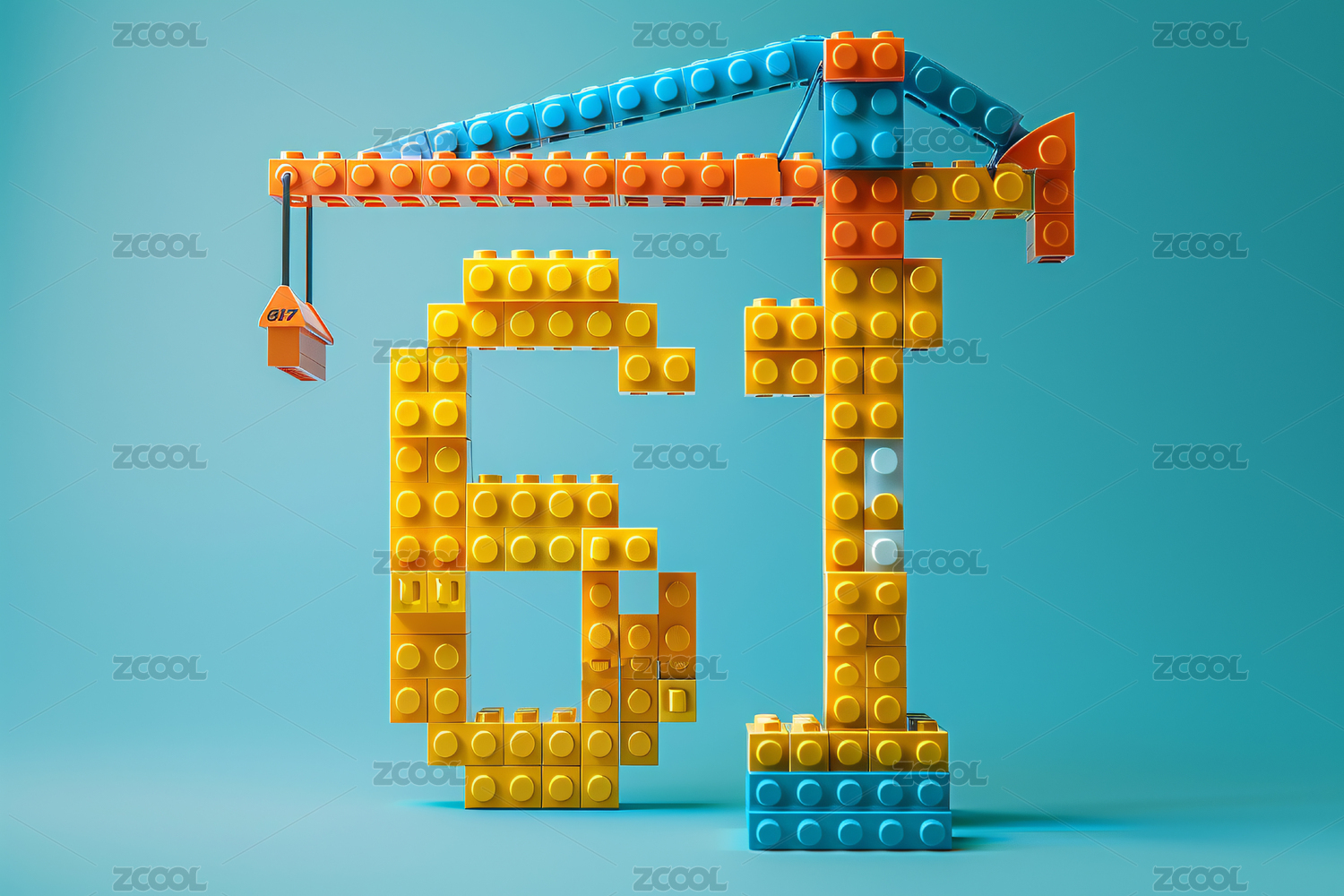 彩色积木字母吊车在安装5G系统