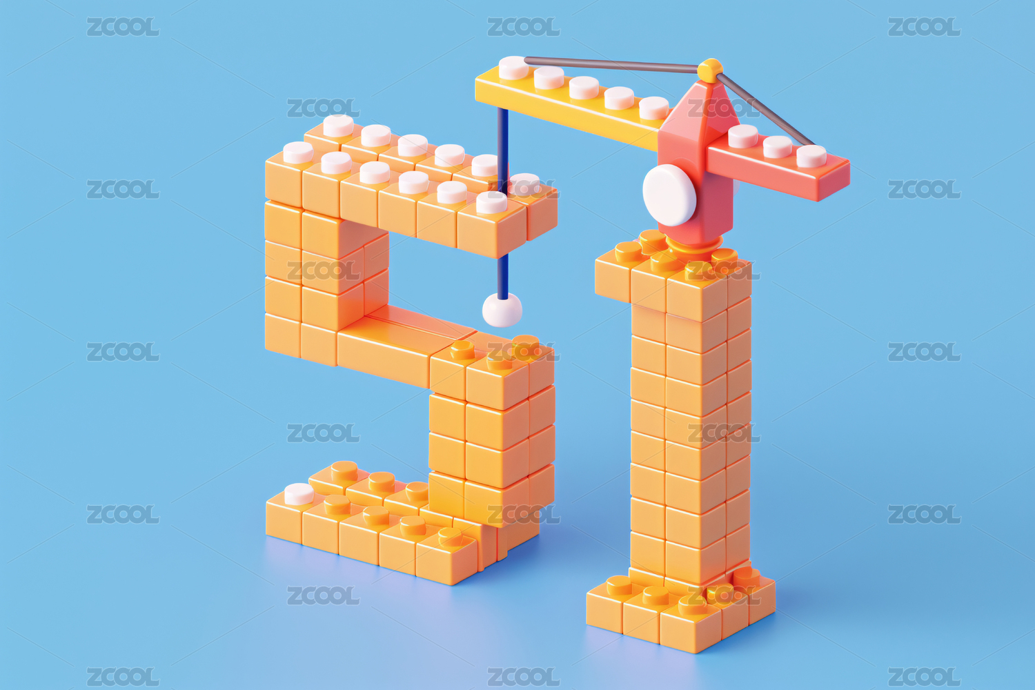 用砖砌成的三维数字51,劳动节3D渲染概
