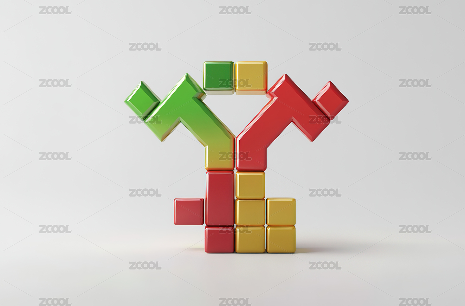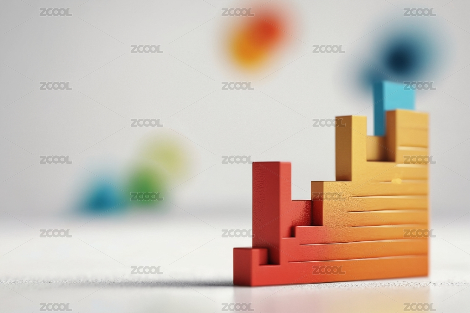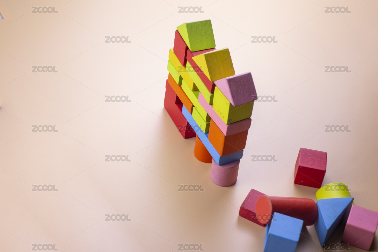纯色背景中放着彩色木质积木