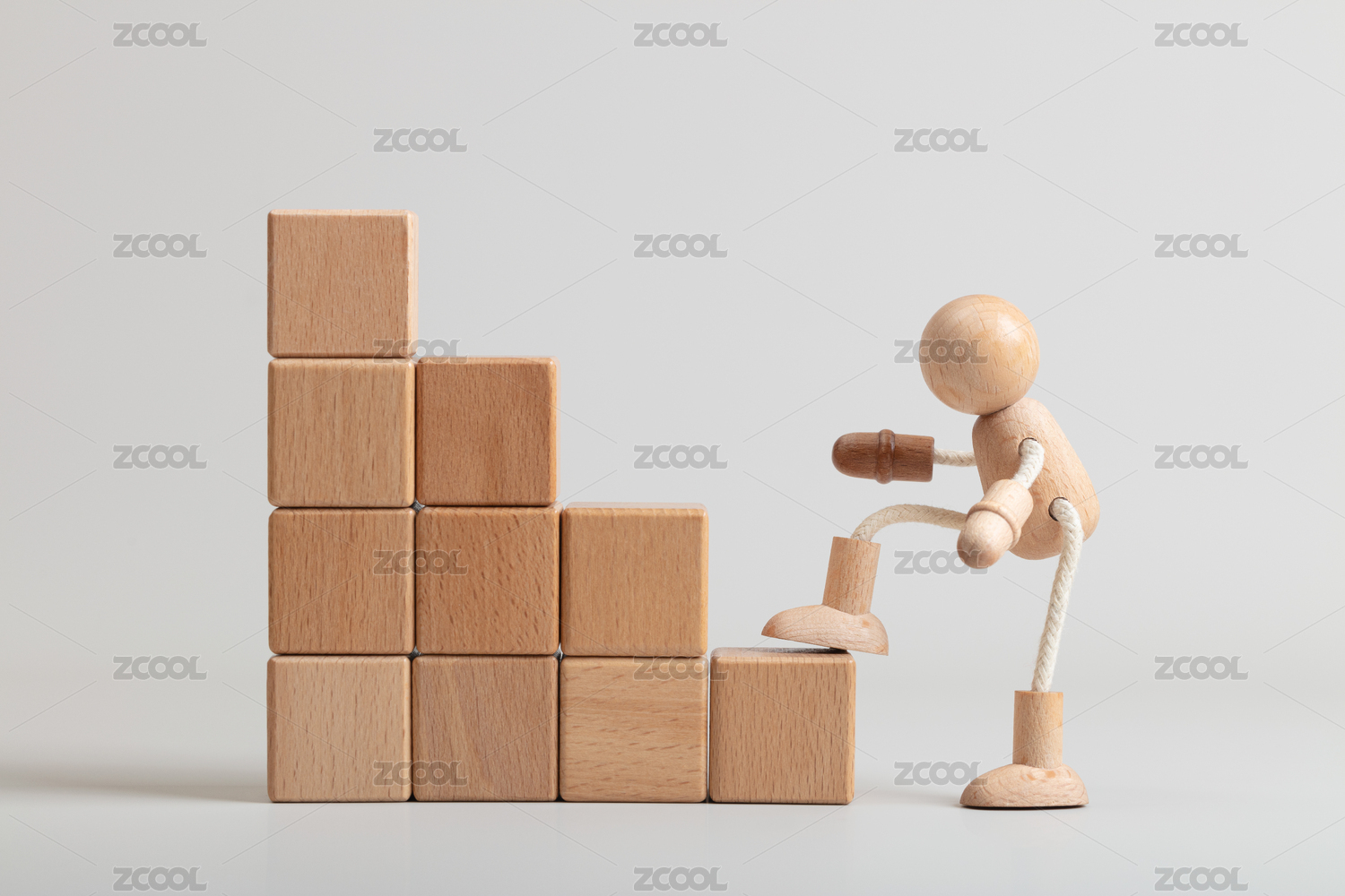 微缩创意训练向上走阶梯的木头人